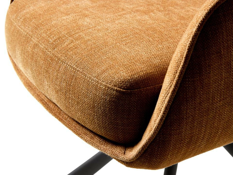 Oranžové čalounění dodává modelu Cowley energii a i jednoduchému interiéru propůjčuje promyšlenější charakter. Černá podnož v polomatném provedení s ním vytváří výrazný, moderní kontrast, díky kterému židle působí lehce, ale zároveň výrazně. Je to skvělá volba, pokud hledáte kus nábytku, který nejen doplní stůl, ale stane se také dekorativním akcentem v interiéru.