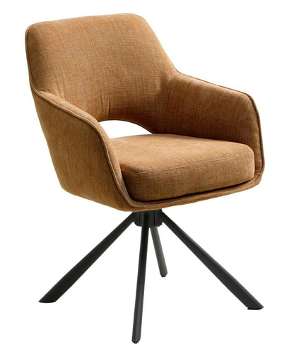 Otočná židle Cowley značky UNIQUE je moderní čalouněná jídelní židle, která spojuje výraznou oranžovou barvu s pohodlím pro každodenní používání. Měkký sedák, integrované područky a stabilní černá podnož se 4 nohami zajišťují, že se tento model skvěle hodí ke stolu, ale také jako židle do obývacího pokoje nebo židle do kuchyně. Díky rozměrům 59 cm na šířku a 65 cm do hloubky poskytuje pohodlné místo k sezení, aniž by působil v interiéru těžkopádně.