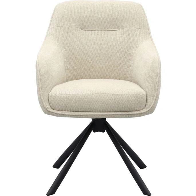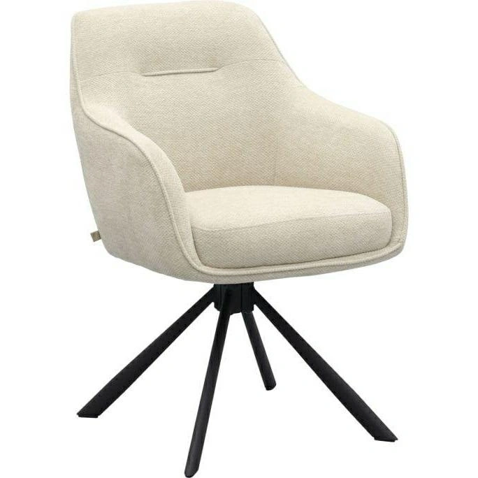 Otočná židle Avola značky UNIQUE je moderní jídelní židle, která spojuje měkký čalouněný sedák, pohodlné područky a stabilní základnu na čtyřech nohách. Světle béžová látka v kombinaci s černou podnoží vytváří elegantní, nadčasové spojení, které skvěle vypadá jak u jídelního stolu, tak v odpočinkové zóně. Jde o model navržený s důrazem na každodenní pohodlí – komfortní, praktický a přizpůsobený současným interiérům.