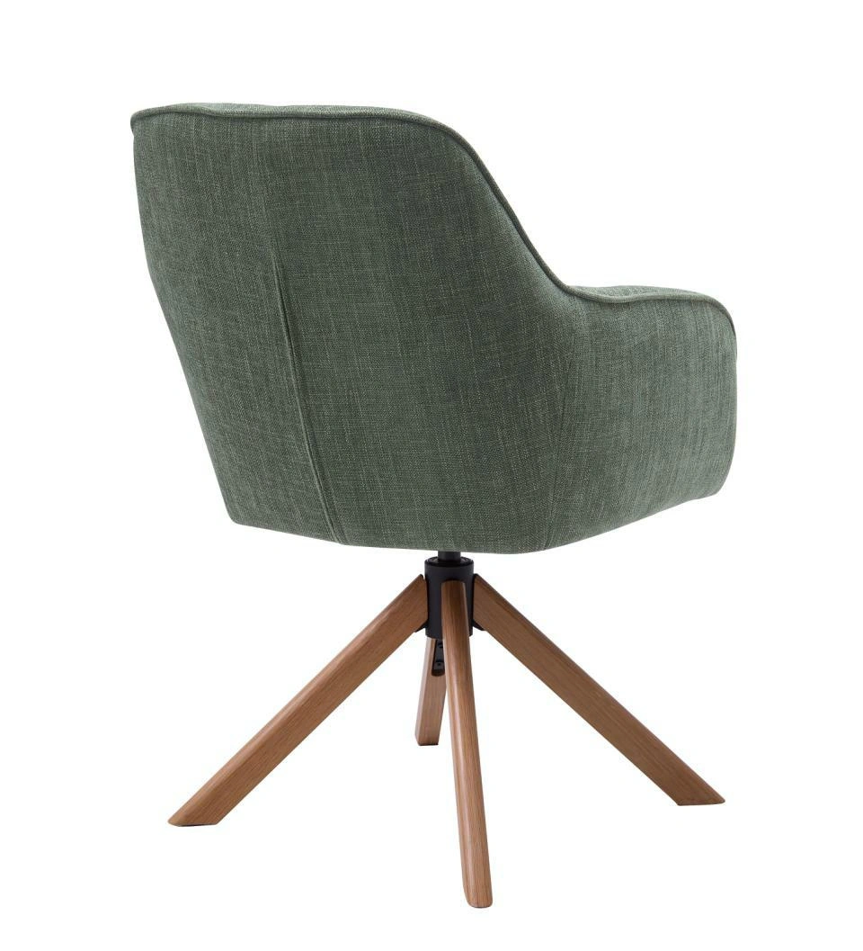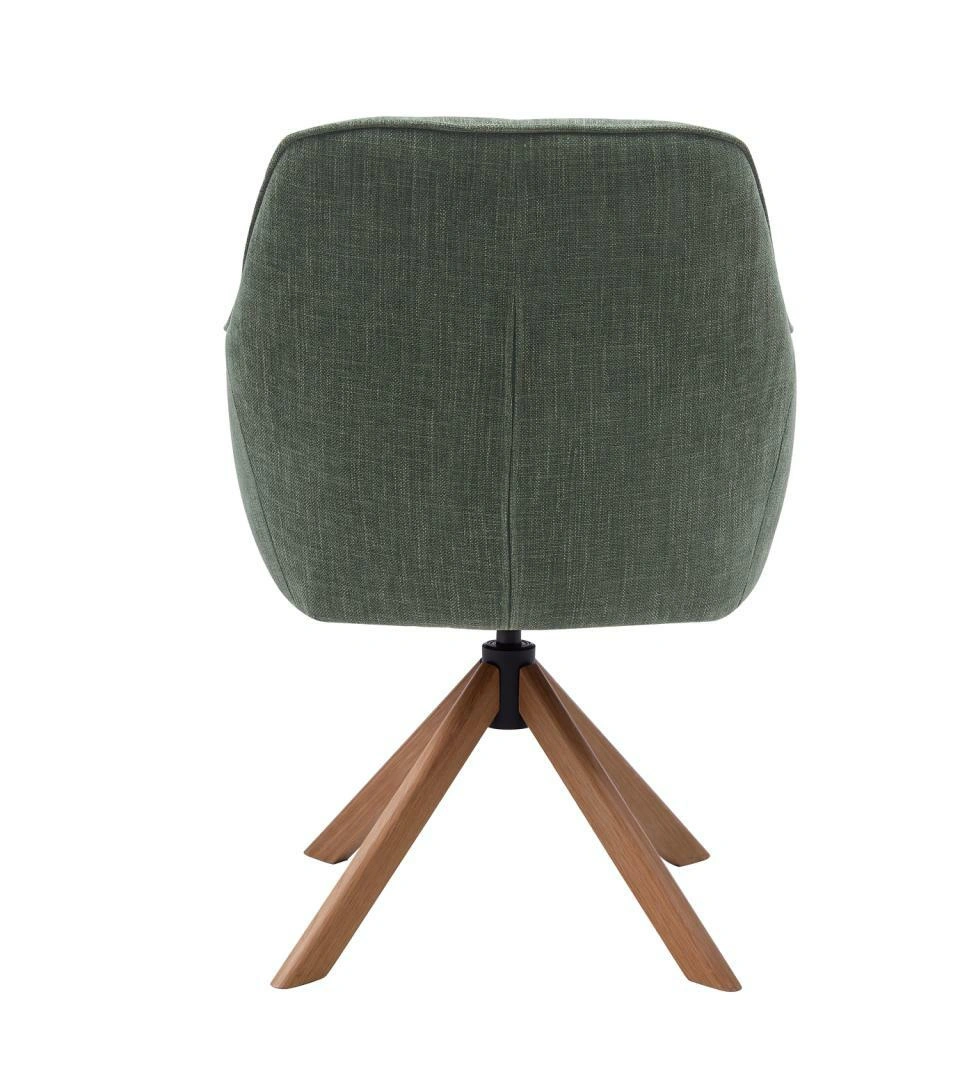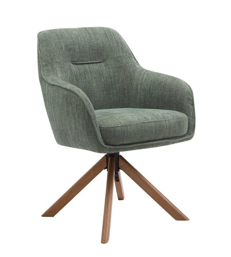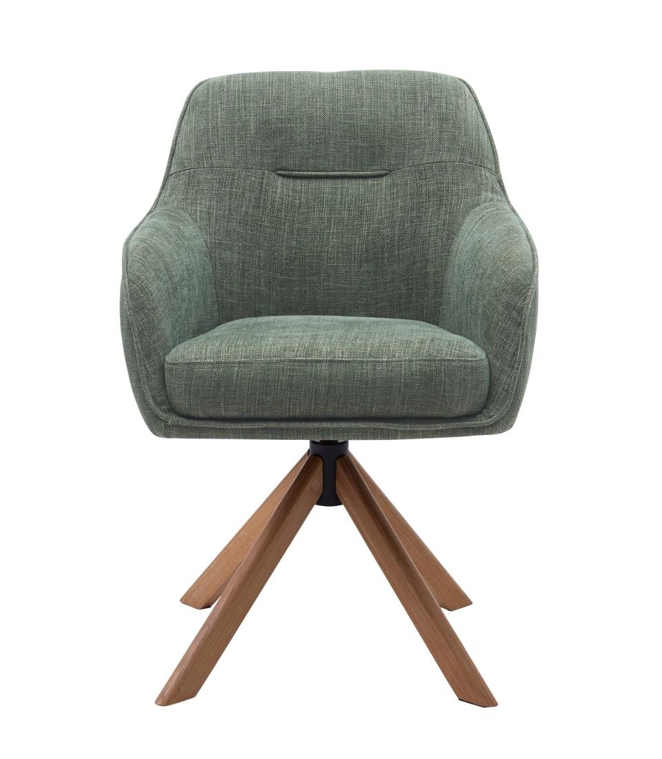 Čalouněná otočná židle Avola značky UNIQUE je moderní jídelní židle do jídelny i obývacího pokoje, která spojuje pohodlí měkkého sedáku s přirozeným půvabem dubové podnože. Zelené čalounění, područky a otočná funkce dělají z modelu Avola skvělou volbu ke stolu, zároveň však působí elegantněji než klasické jídelní židle. Je to ideální řešení pro ty, kteří hledají nábytek pohodlný pro každý den a sladěný s moderním interiérem.