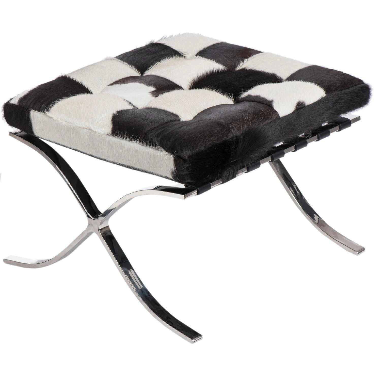 Podnožka BA1 Premium se vyznačuje svým moderním a loftovým stylem. Její podstavec je tvarovaný do tvaru písmene "X" a je vyroben z chromovaného kovu, což dodává celkovému designu sofistikovaný vzhled. Sedací část je pokryta přírodní kůží, která je prošívaná do čtverců, což zaručuje maximální pohodlí a luxusní vzhled.
