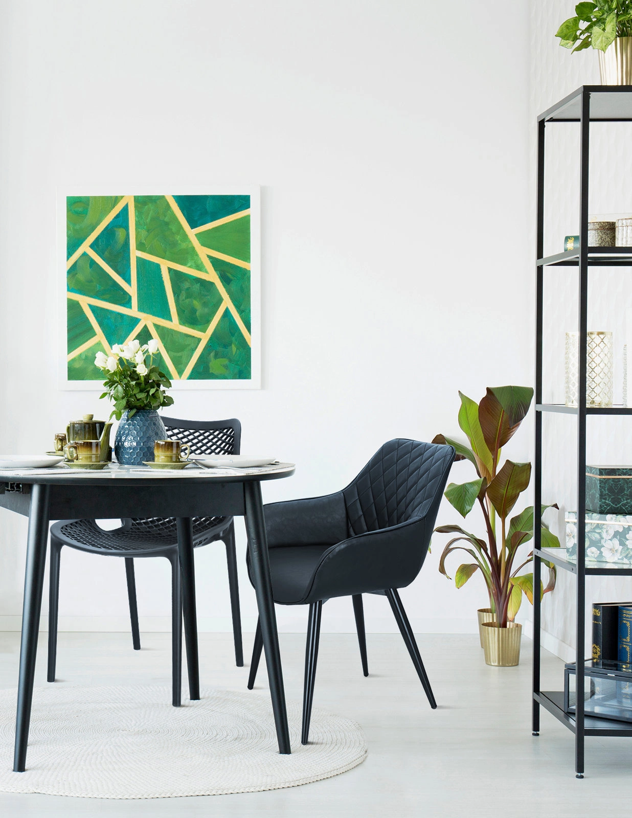 Elegantní provedení sedáku z kvalitní ekokůže v černé barvě působí velmi stylově a snadno se udržuje – stačí otřít vlhkým hadříkem, aby opět vypadala jako nová. Kovová základna ve stejném odstínu podtrhuje moderní charakter židle a zajišťuje mimořádnou stabilitu i dlouhou životnost. Rox je ideální volbou do interiérů v provensálském, loftovém i moderním stylu, kde je důležitý minimalismus a výrazný designový prvek.