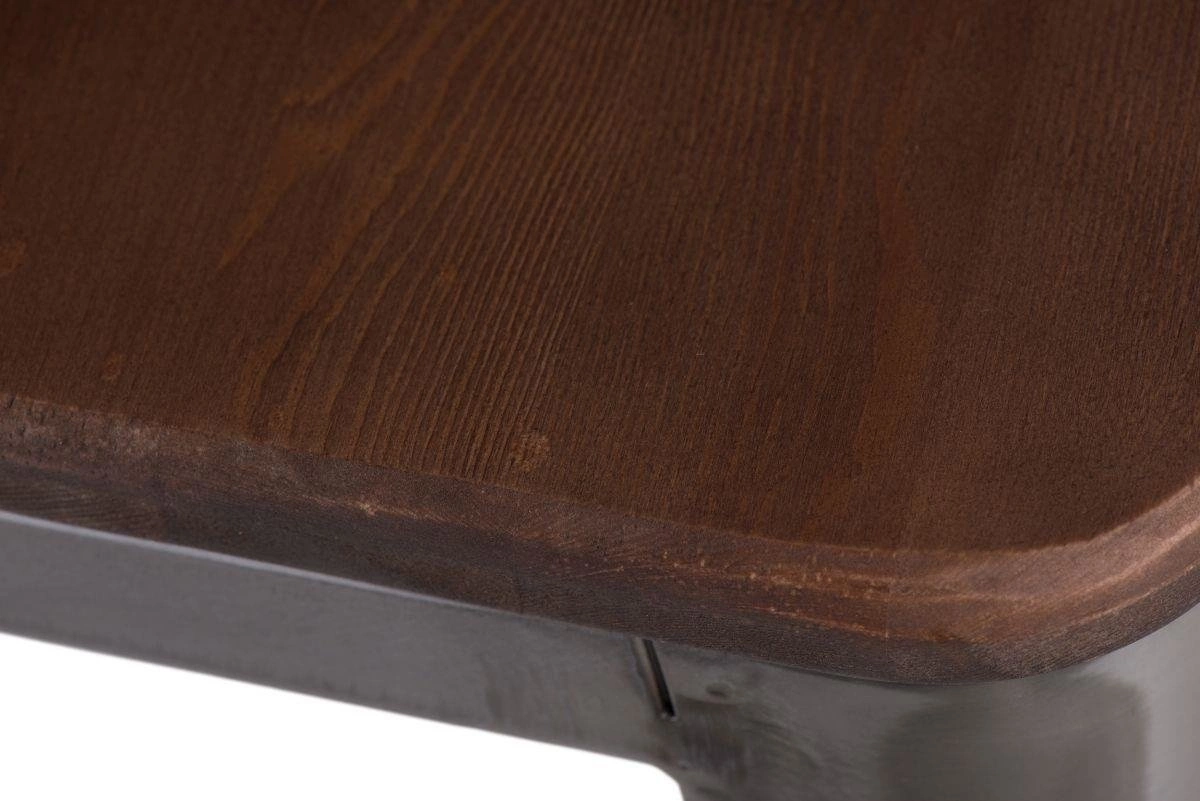 Práškově lakovaná kovová konstrukce je v kontrastu se sedákem z přírodního borovicového dřeva v barvě ořechu.
