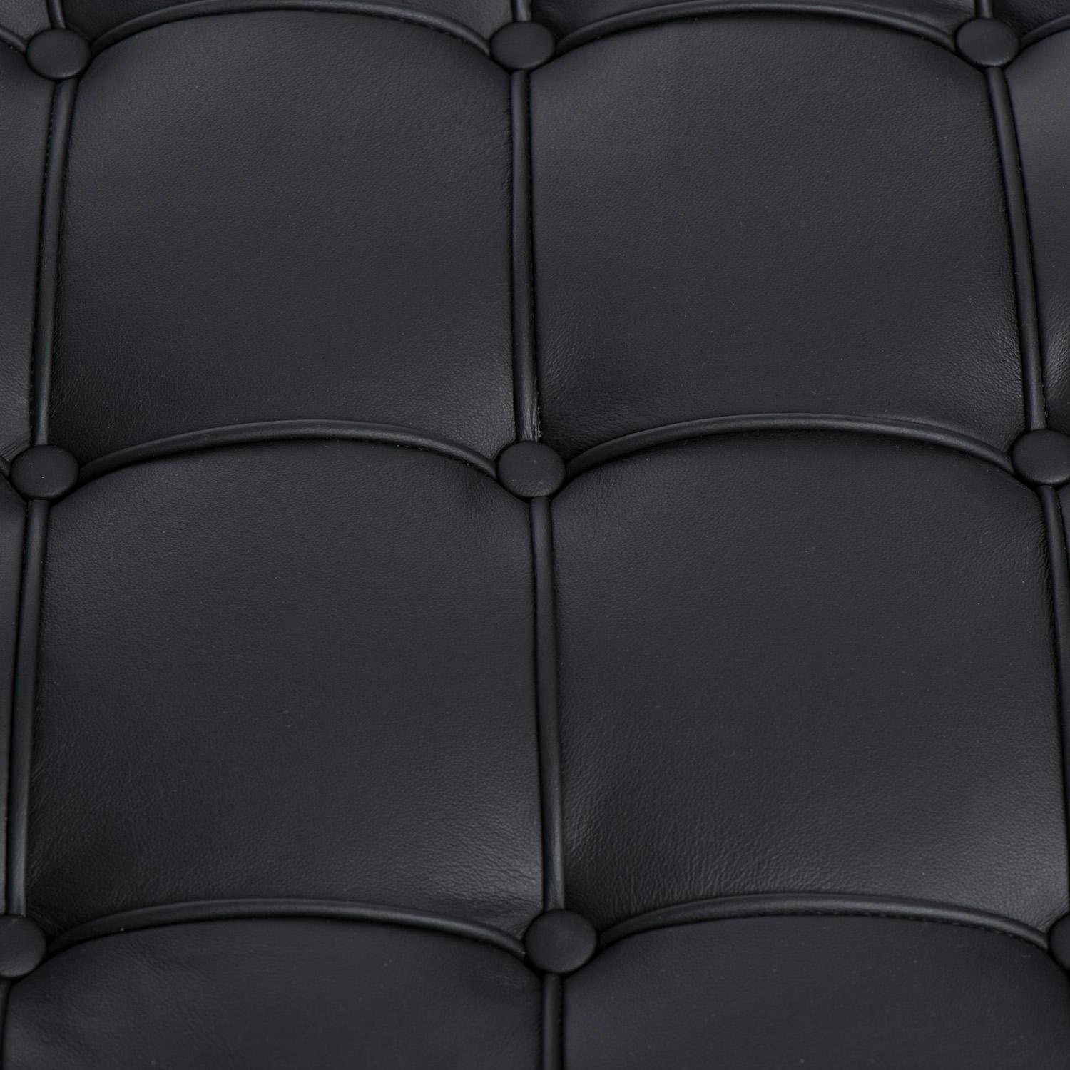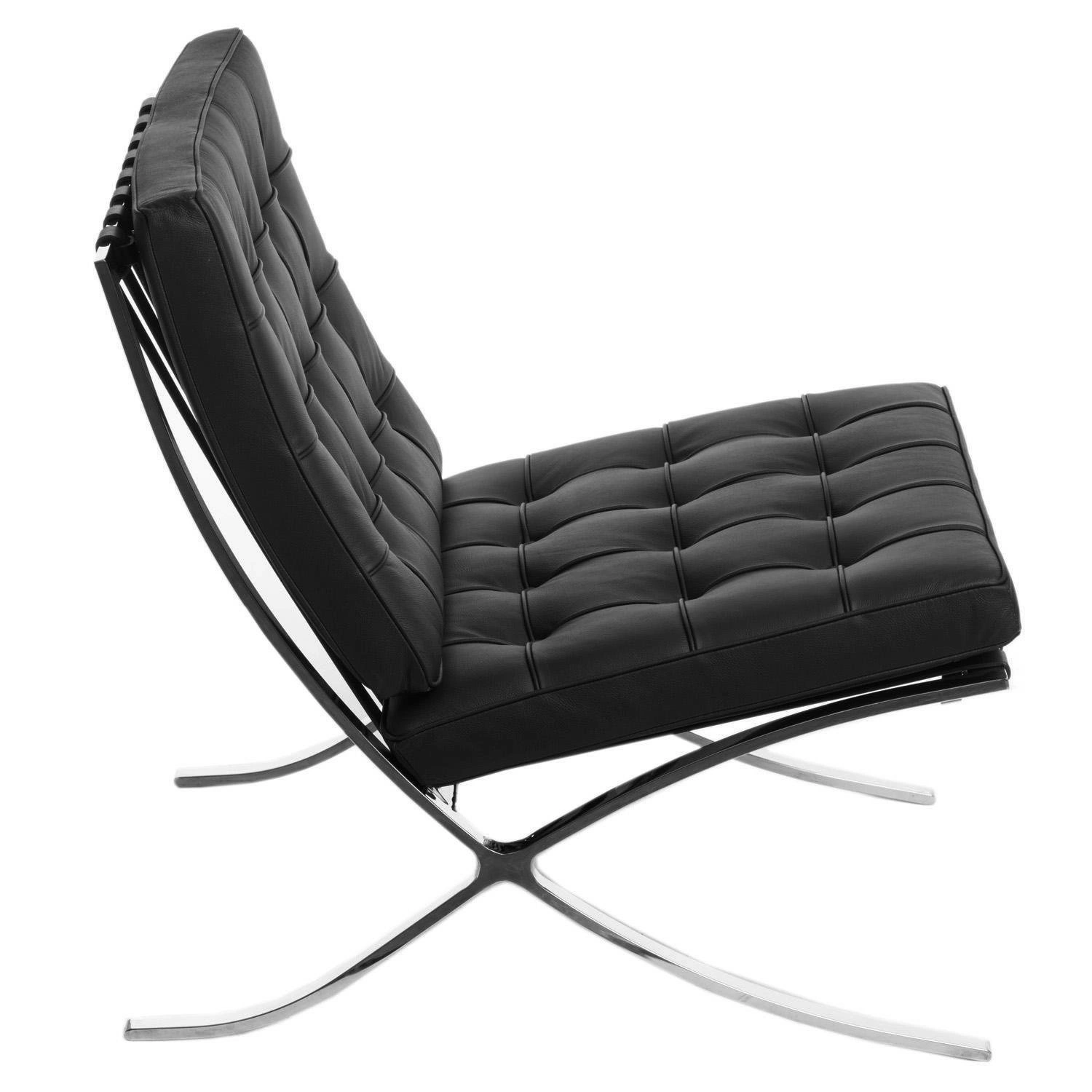 Křeslo BA1 inspirované Barcelona je volbou pro ty, kteří oceňují kombinaci vytříbeného designu a funkčnosti. Výrazná černá ekokůže a lesklý stříbrný rám tvoří jedinečný pár, který se skvěle hodí jak do glamour interiérů, tak do moderních prostor. Precizně prošívané čalounění dělá z tohoto křesla nejen praktický nábytek do obýváku nebo pracovny, ale i stylovou dekoraci, která zaujme na první pohled a zvýrazní osobitost vašeho domova.