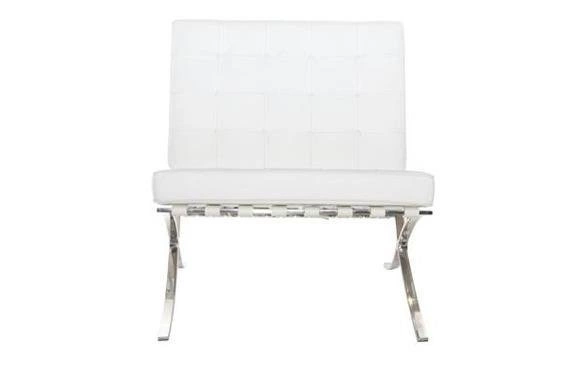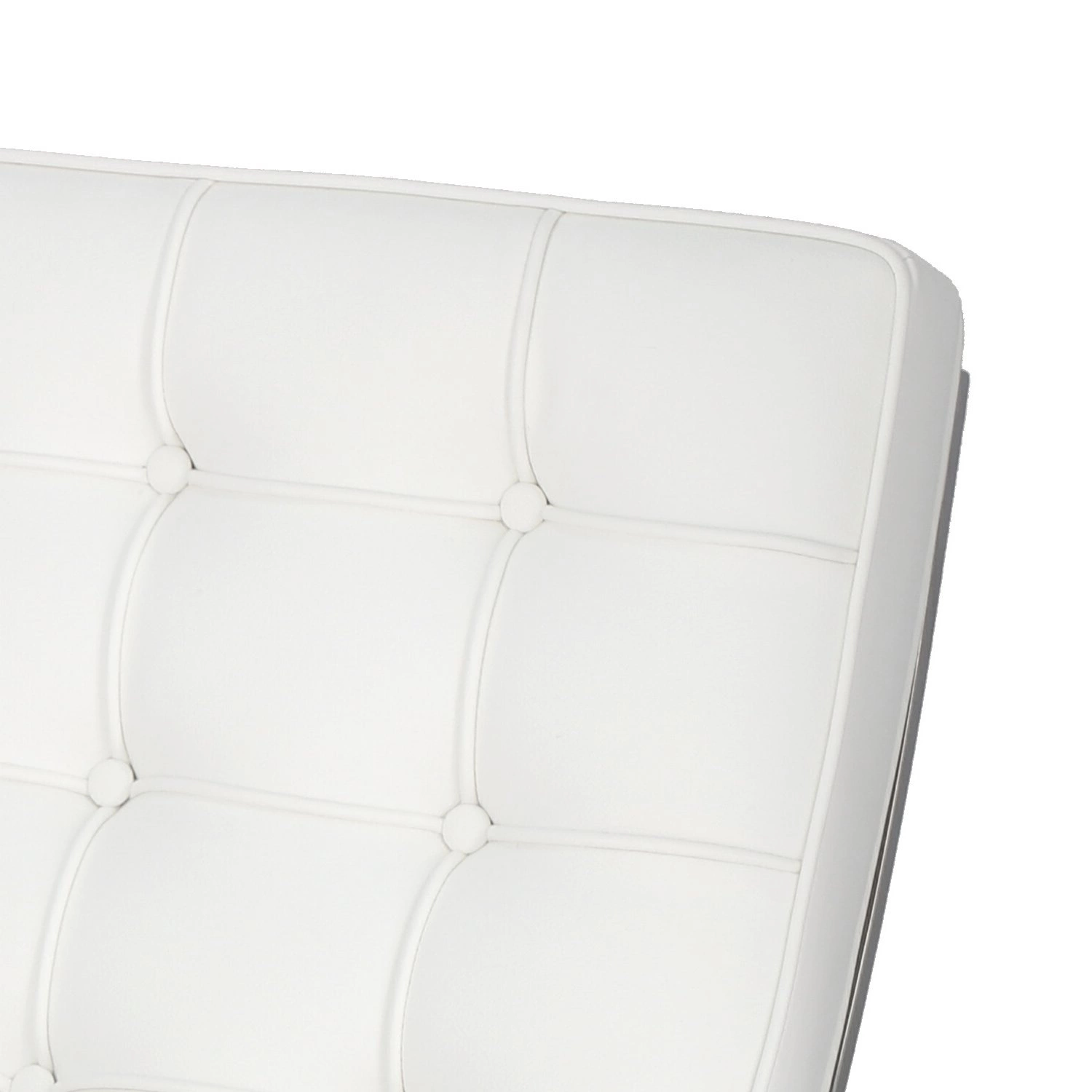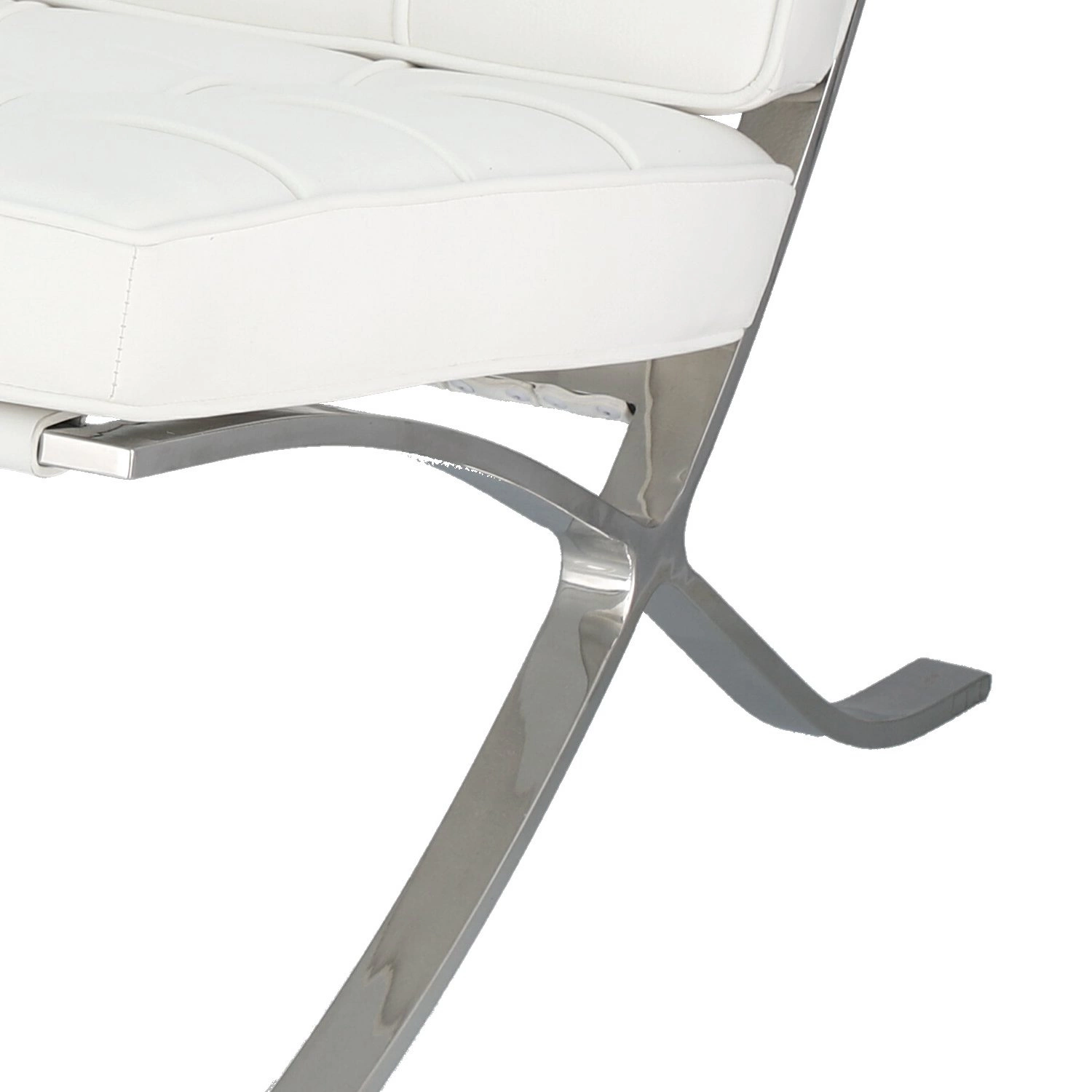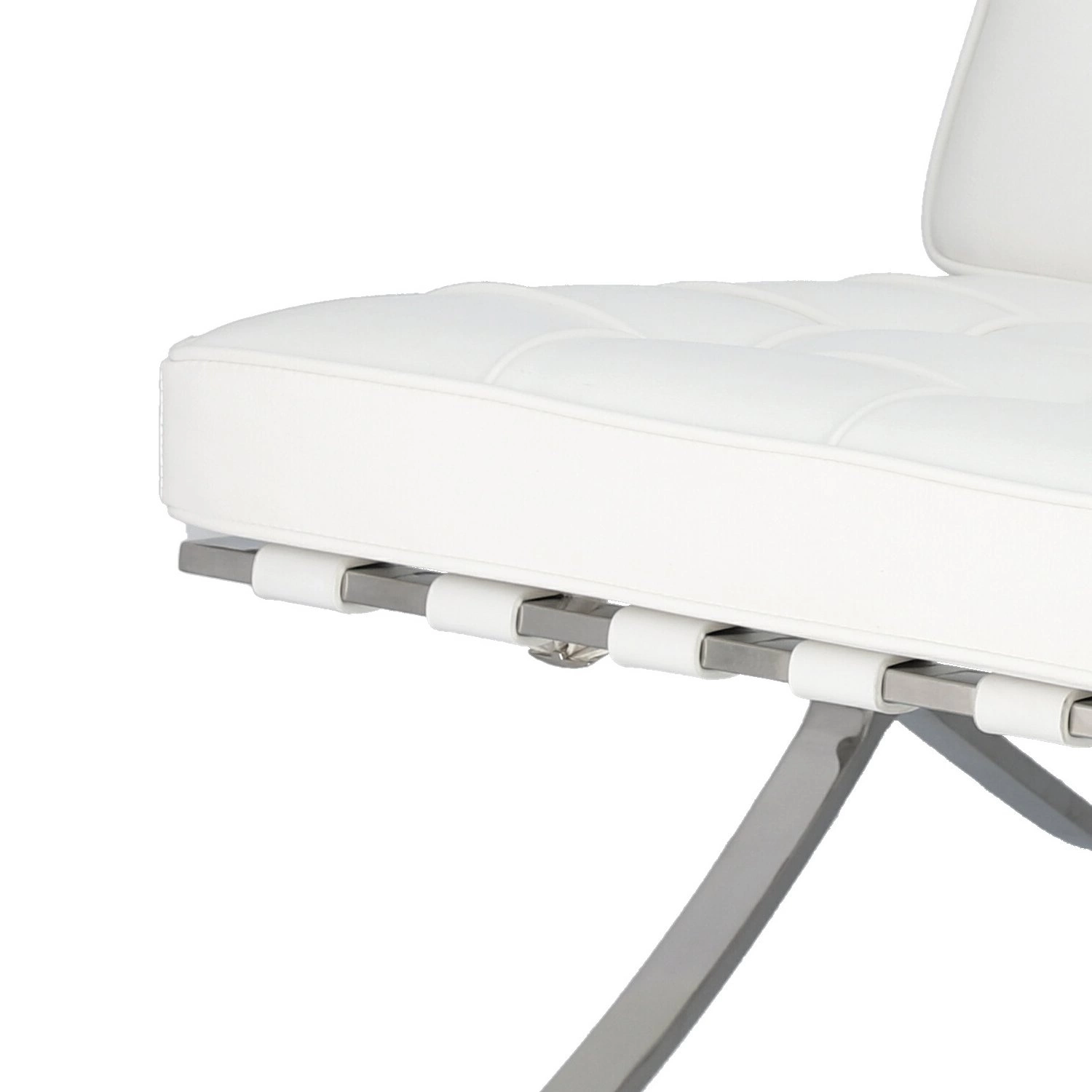 Výjimečné křeslo BA1 inspirované Barcelona je symbolem jemného luxusu a moderny – jeho geometrické tvary a prošívaný sedák zaujmou na první pohled a dodají interiéru jedinečný charakter. Precizně tvarovaná podnož na chromovaných lyžinách zaručuje nejen stabilitu, ale také stylové doplnění glamour aranžmá. Světlá, bílá ekokůže podtrhuje svěžest a lehkost nábytku, díky čemuž se křeslo skvěle hodí jak do minimalistických, tak i bohatě zdobených prostor.