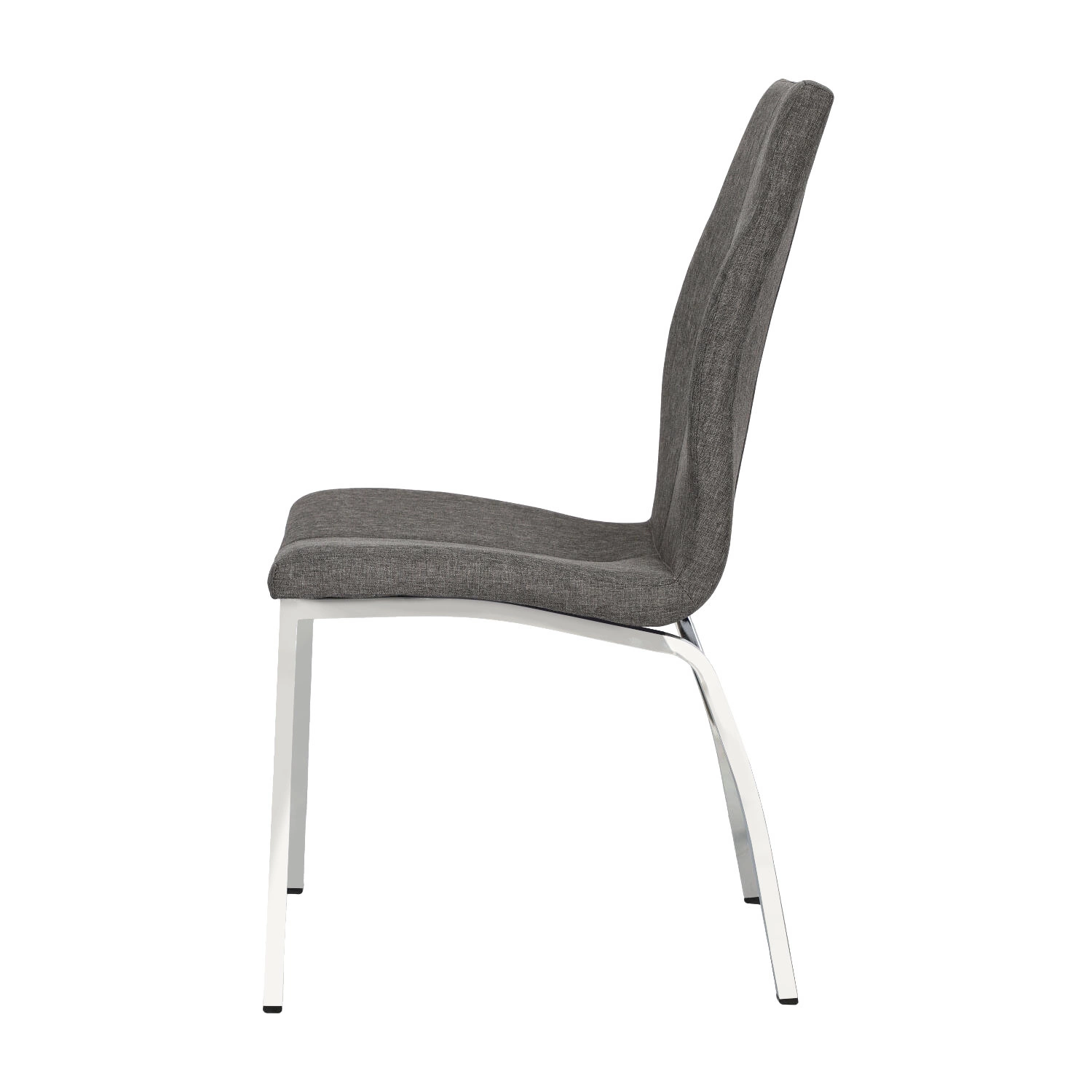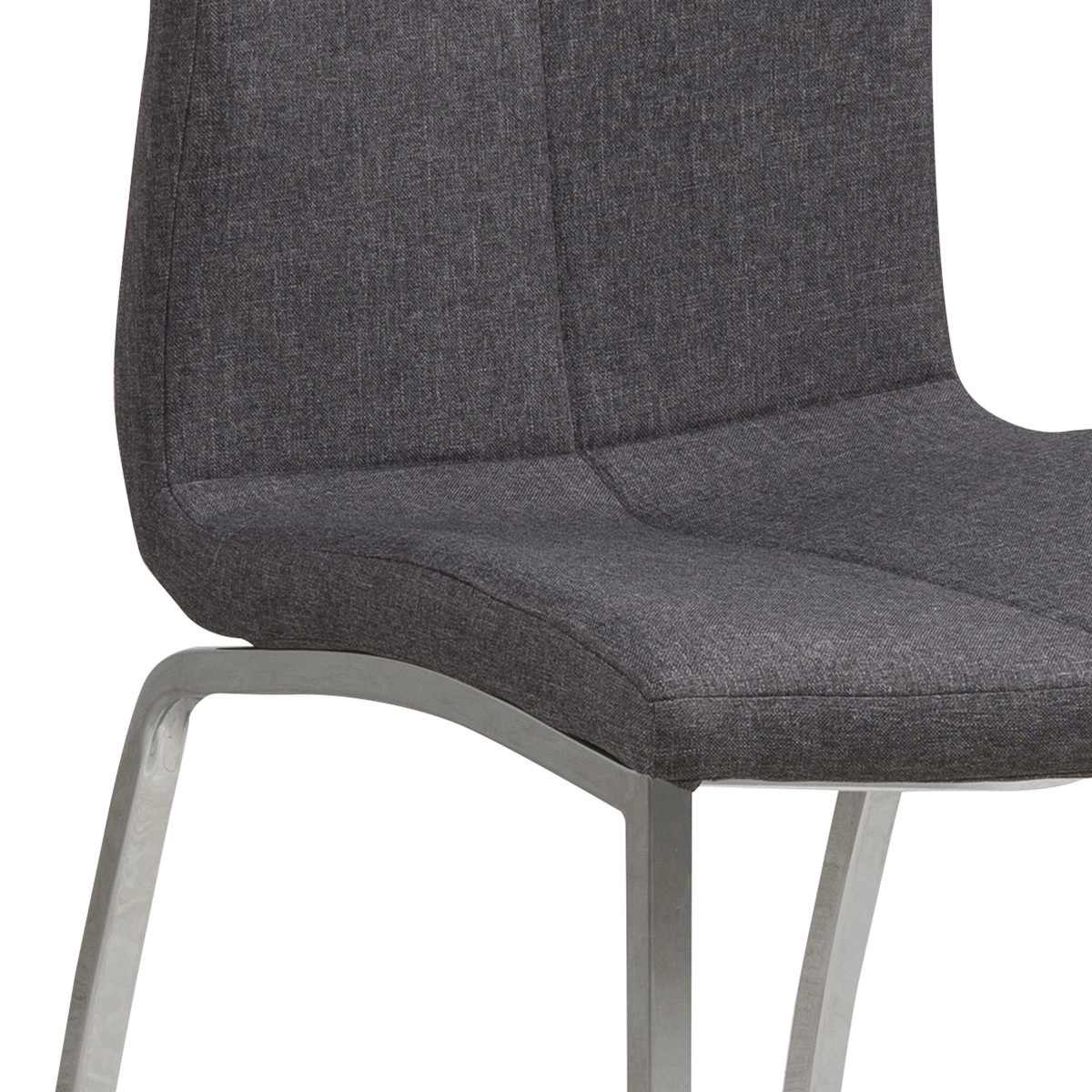 Moderní jídelní židle Asama je praktickým a pohodlným nábytkem. Sedadlo a opěradlo tvoří jeden prvek. Celý je pokryt kvalitní tkaninou v šedé barvě s jemnou tvídovou strukturou. Opěradlo je hezky ohnuté a vytváří pocit pohodlí. Dekorativní šev prochází středem opěradla a sedadla. Zajímavé zakřivení nohou dává nábytku moderní charakter. Perfektní řešení pro jídelnu nebo konferenční místnost.