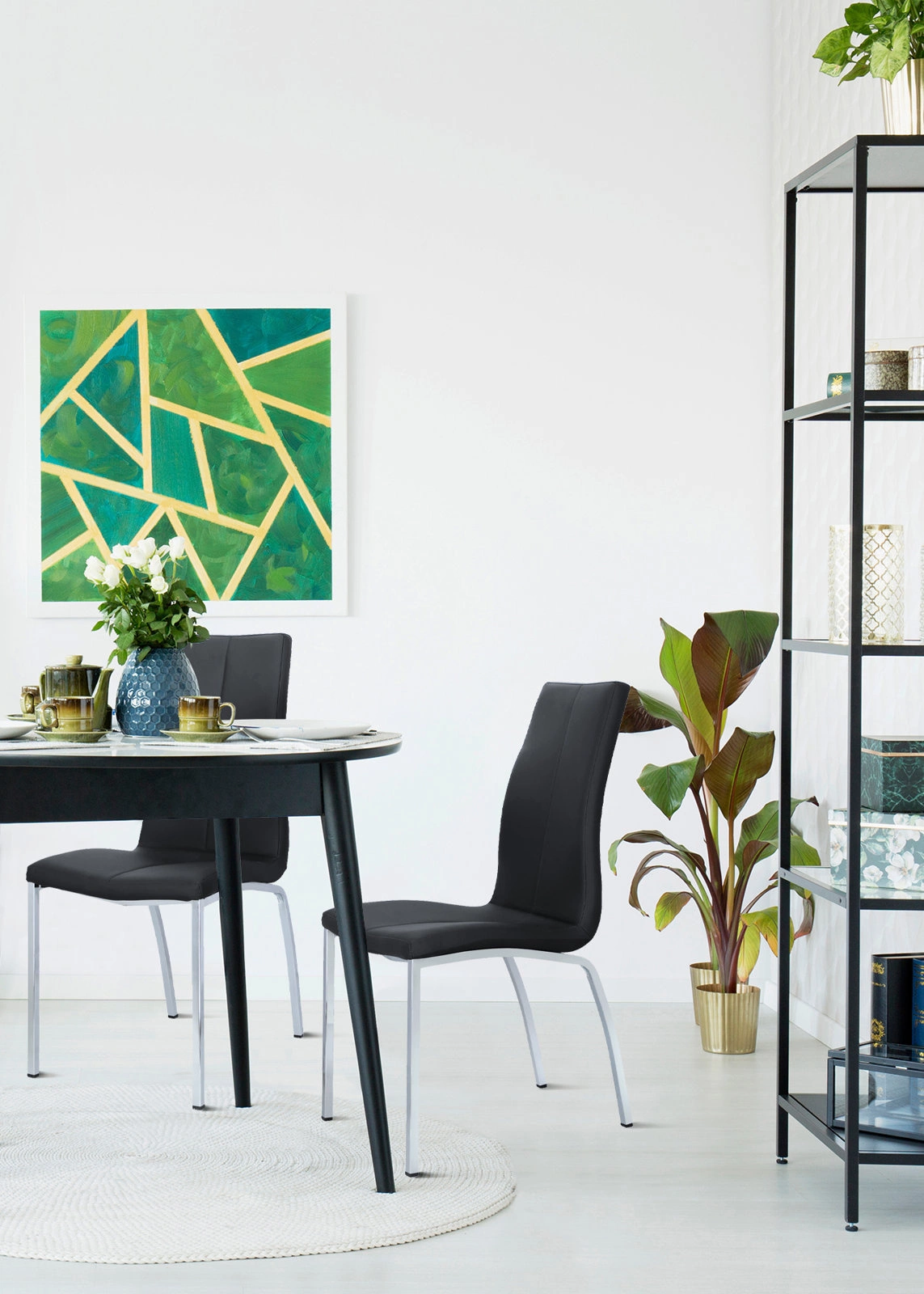 Sada 4 jídelních židlí Asama Actona černé čalouněné ekokůže moderní kovové