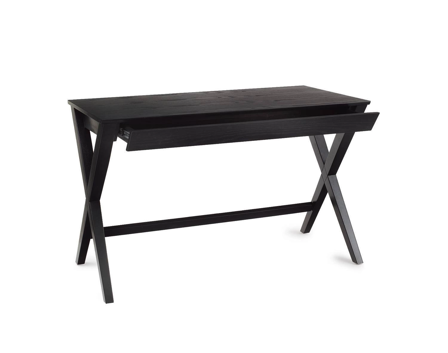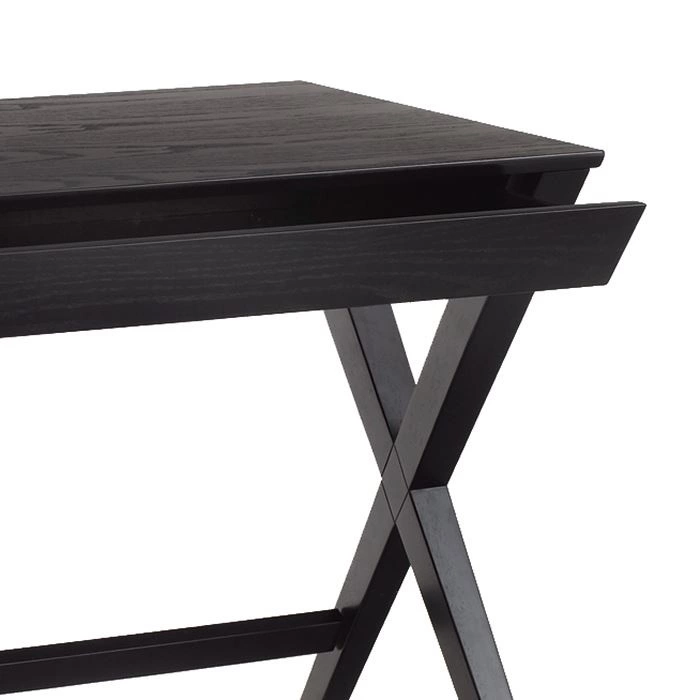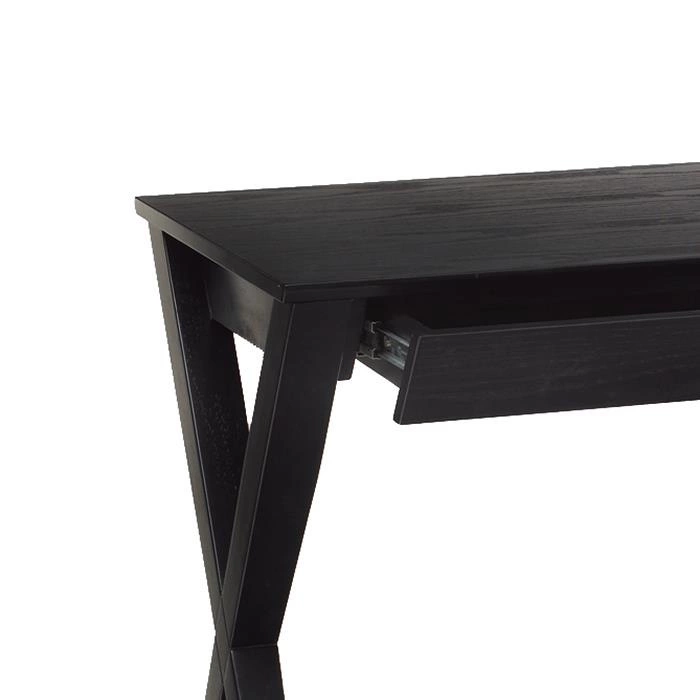 Skandinávský psací stůl Writex je minimalistický kus nábytku. Černě malovaný stůl je pokryt dubovou dýhou. Stůl má šikmé hrany. Pod horní částí je jedna zásuvka. Nohy stolu jsou tvarovány jako dva dřevěné kříže, které jsou na zadní straně připojeny příčným prvkem, který zpevňuje celou konstrukci. Moderní stůl v skandinavském stylu bude skutečnou výzdobou.