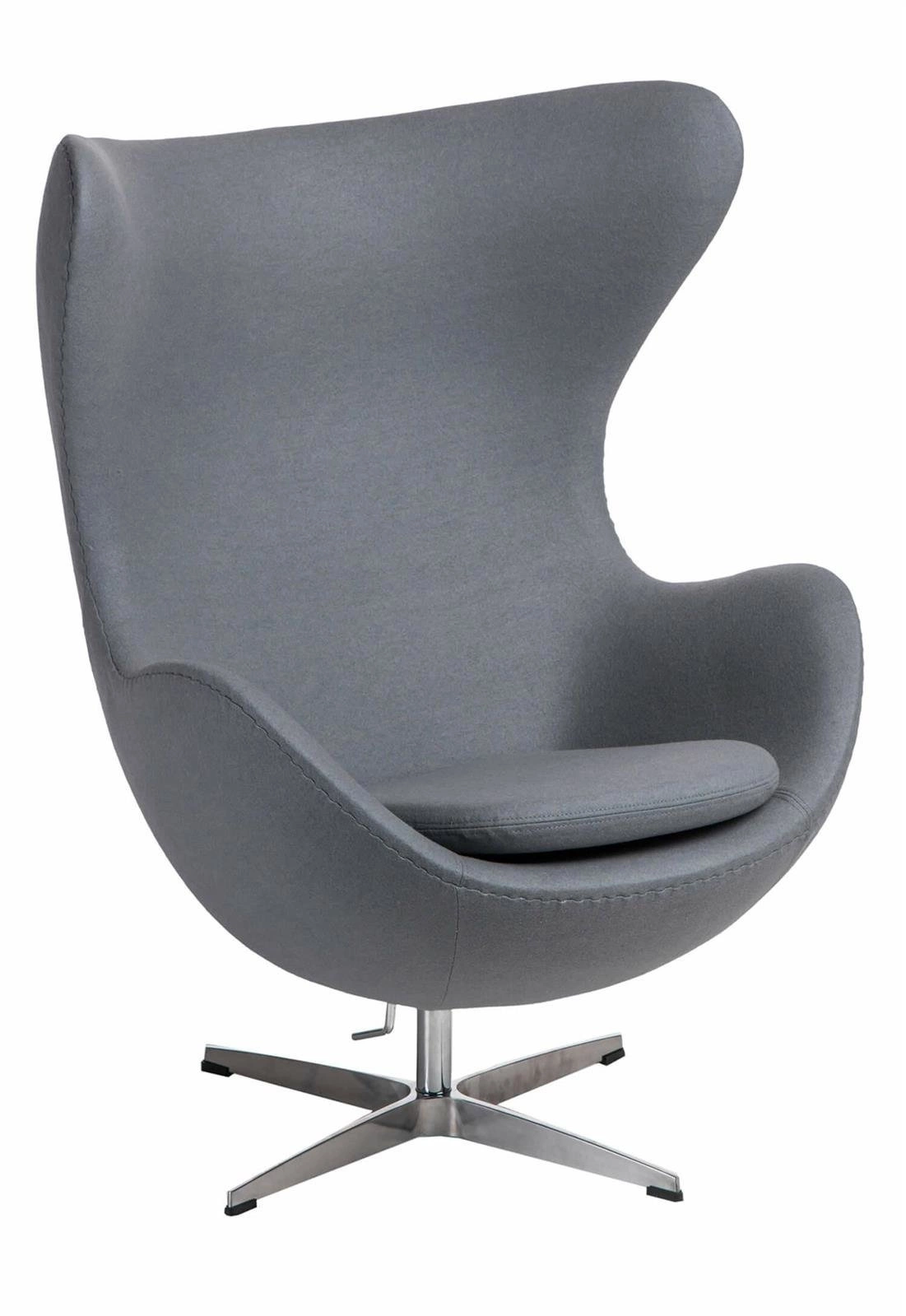 Inspirací pro tento model byl ikonický tvar „vejce“, který již léta fascinuje milovníky originálního odpočinkového nábytku. Oválná linie sedáku a výrazný profil dělají z křesla středobod každého obývacího pokoje či domácí kanceláře, perfektně zapadá do glamour stylu i moderního interiéru. Světle šedá kašmírová látka dodává interiéru lehkost a chromovaná základna decentně podtrhuje celkovou eleganci.