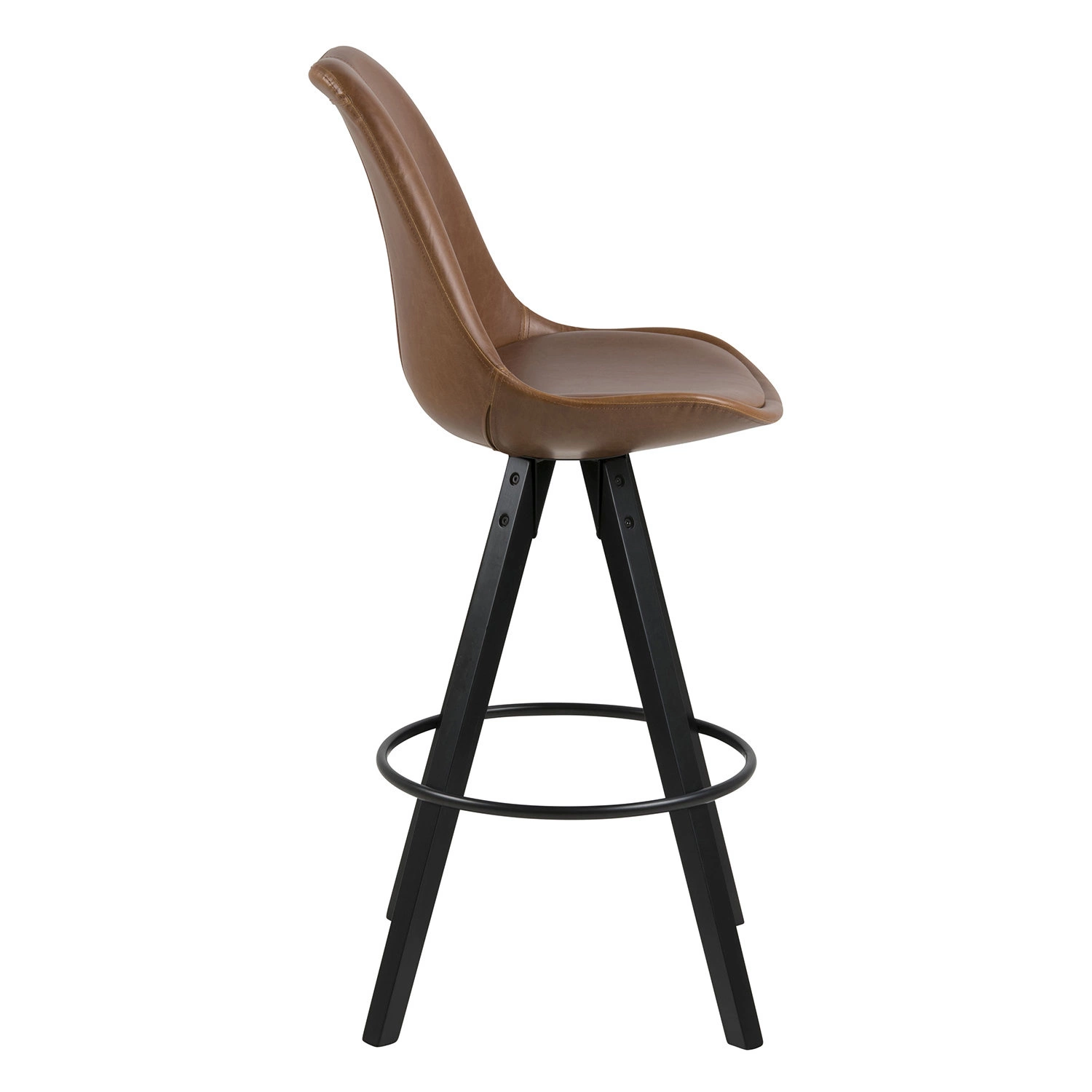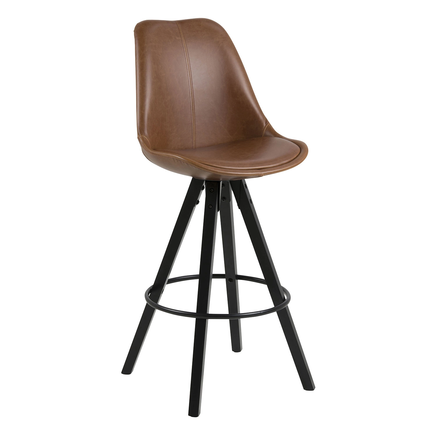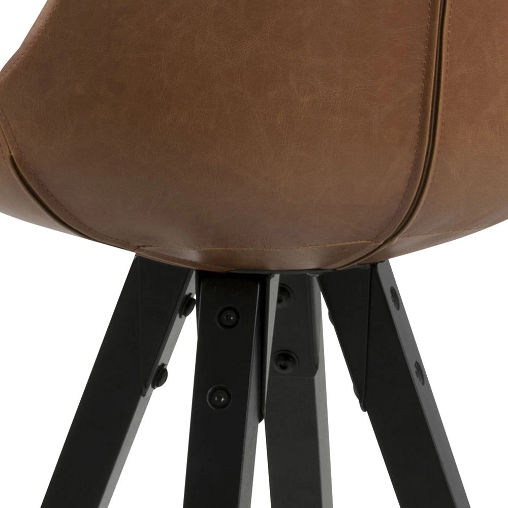 Hoker Dima Brandy od značky Actona je spojení moderního pohodlí a nadčasové elegance. Sedák z měkké, hnědé ekokůže je umístěn na stabilních, černých nohách z masivního dřeva, což zaručuje nejen dlouhou životnost, ale také stylový vzhled. Díky vysokému opěradlu a optimální výšce sedáku 75 cm je tato barová židle ideální volbou jak ke kuchyňskému ostrůvku, tak i do domácí jídelny.