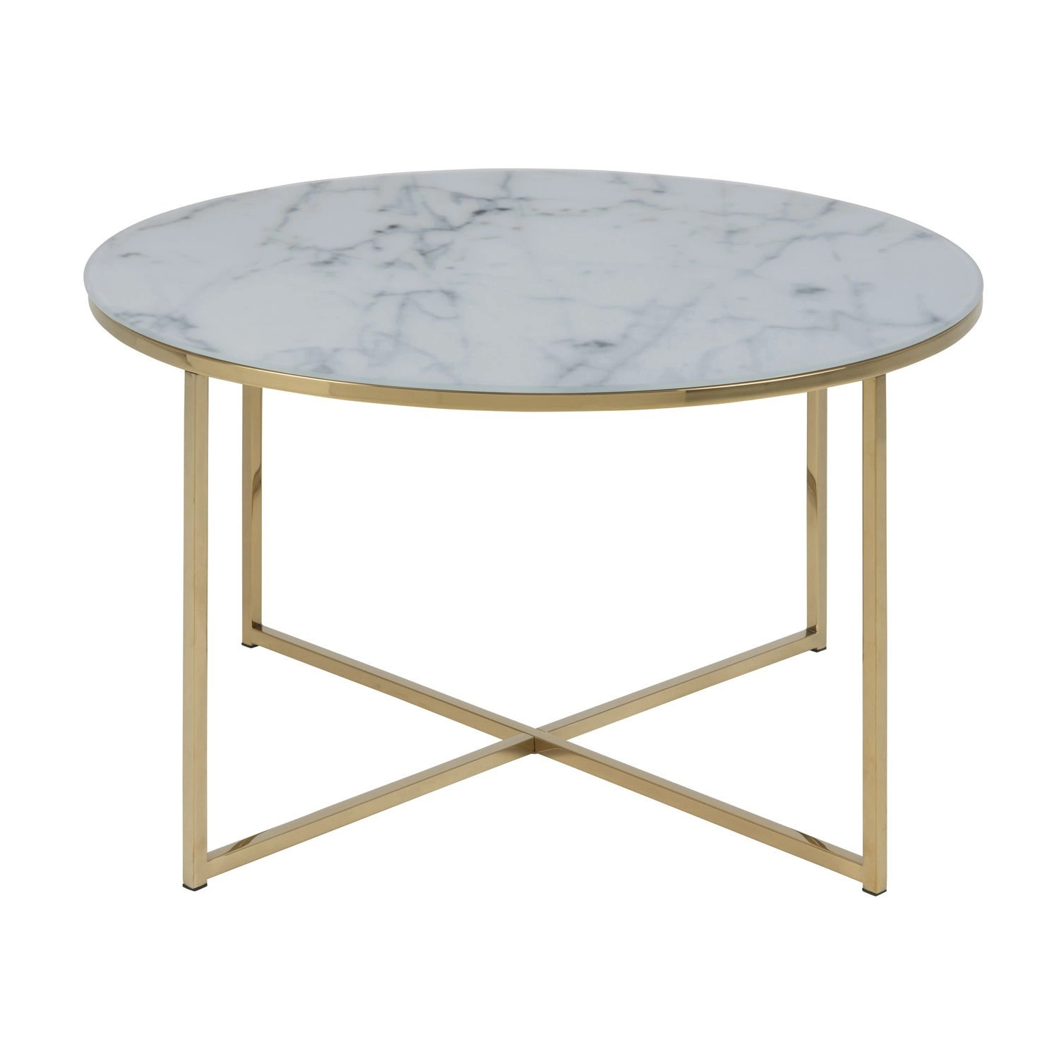 Kulatý konferenční stolek Alisma skleněný bílý se zlatou kovovou podstavou Actona – 80 cm