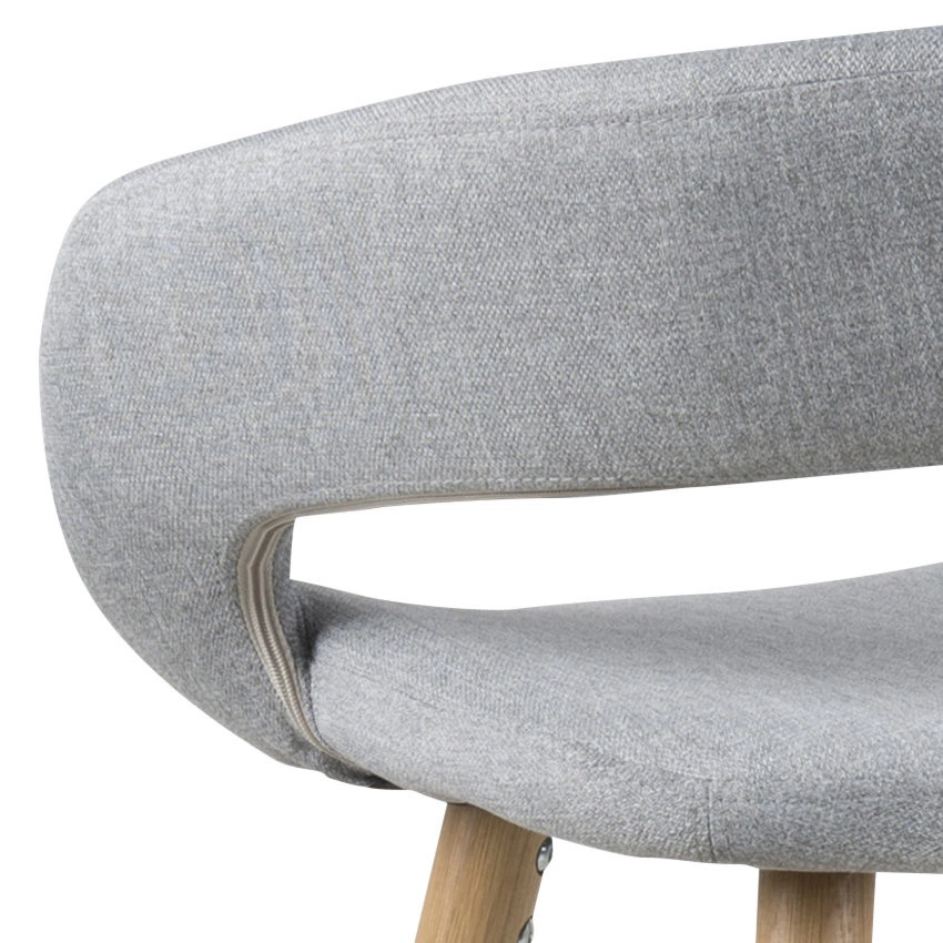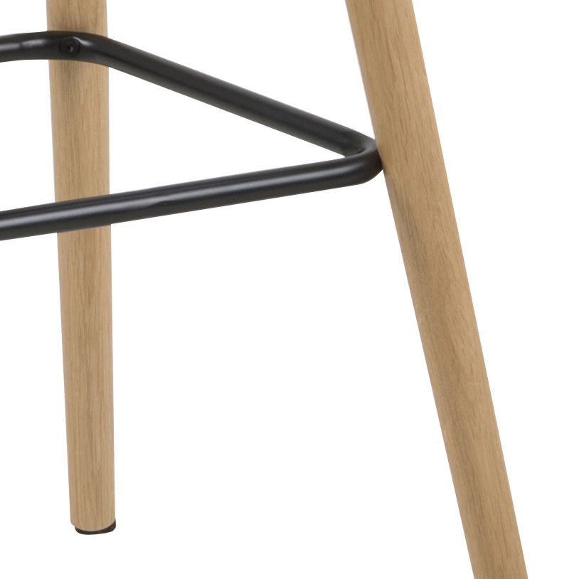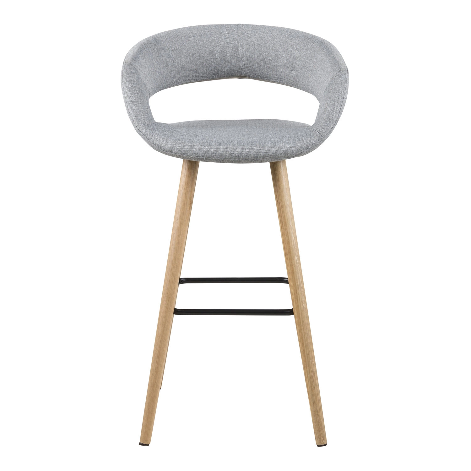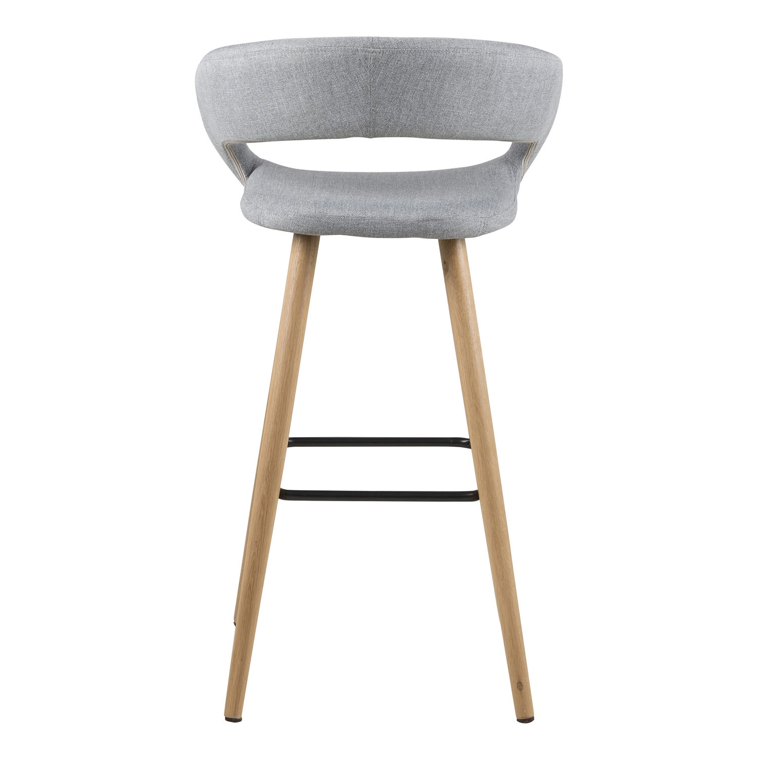 Barová stolička Grace se vyznačuje jedinečnou konstrukcí. Sedák s neobvyklým tvarem je vyrobeny ze světle šedého materiálu, zatímco základem jsou olejované nohy z masivního dubu. Stolička Grace je velmi pohodlná.