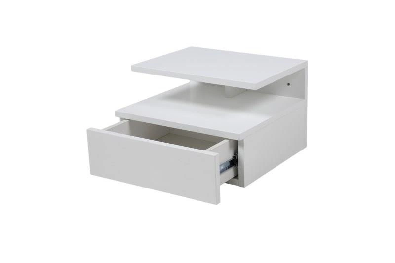 - Bílý závěsný noční stolek – snadná montáž v libovolné výšce, díky čemuž jej přizpůsobíte svým potřebám i výšce postele