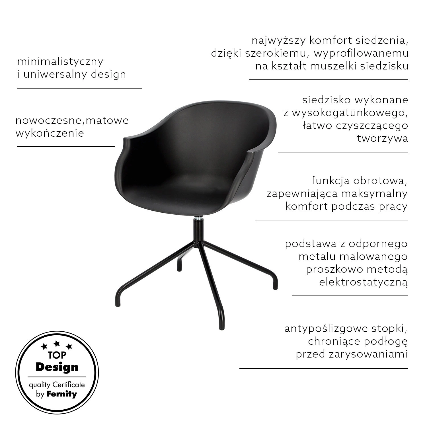 Židle Roundy Light Grey je ideální alternativou k tradiční kancelářské židli. Sedák z odolného polypropylenu bylo kombinován s nestandardní kovovou nohou. Celek má extrémně lehký tvar.