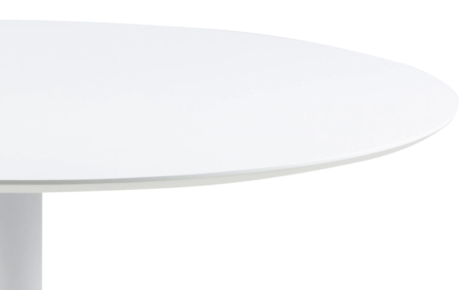 - Kulatá, bílá deska o průměru 110 cm – ideální pro menší kuchyně a otevřené jídelny