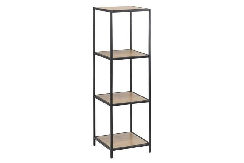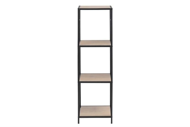 Regál Seaford VI byl navržen s ohledem na moderní a skandinávské prostory. Černé kovové nohy podtrhují vzdušnost tvaru, zatímco police v barvě přírodního dřeva vnášejí do místnosti teplý a útulný akcent. Tato harmonická kombinace se skvěle hodí jak do světlých, tak tmavších interiérů, což umožňuje snadné sladění nábytku s aktuálními trendy i měnícími se potřebami domácnosti. Šířka 35 cm a hloubka 37 cm zajišťují, že regál nezabere příliš místa ani v menších pokojích.