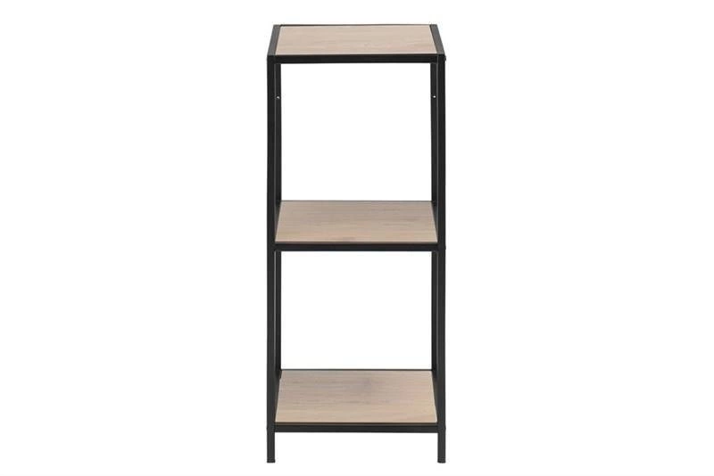 Seaford II byl navržen pro ty, kdo oceňují jednoduchost a praktičnost moderních interiérů. Kovová konstrukce v sytě černé barvě zajišťuje stabilitu a dlouhou životnost, zatímco police v přírodním tónu vytvářejí stylový kontrast s uloženými předměty. Díky šířce 35 cm a hloubce 37 cm se regál vejde i do menších prostor, kde nabízí efektivní využití místa – ať už v domácí knihovně, nebo v pracovním koutku.