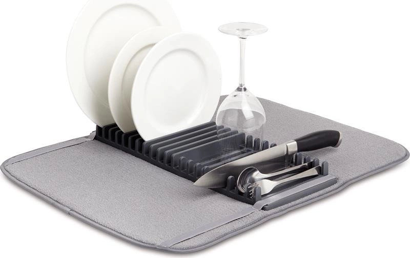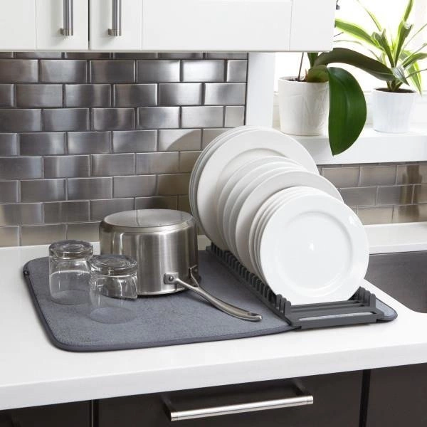 Umbra Udry šedá mikrovláknová odkapávací podložka na nádobí s odkapávačem na kuchyňskou linku 60x46 cm