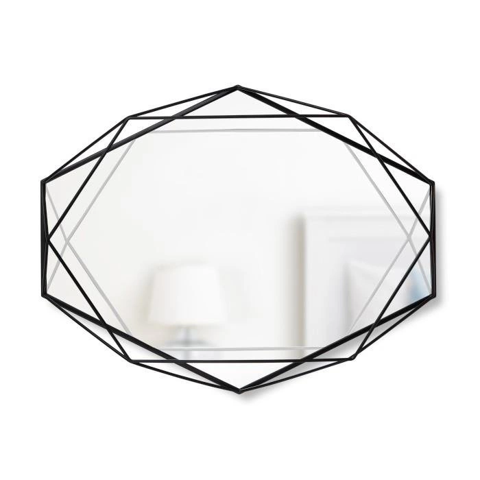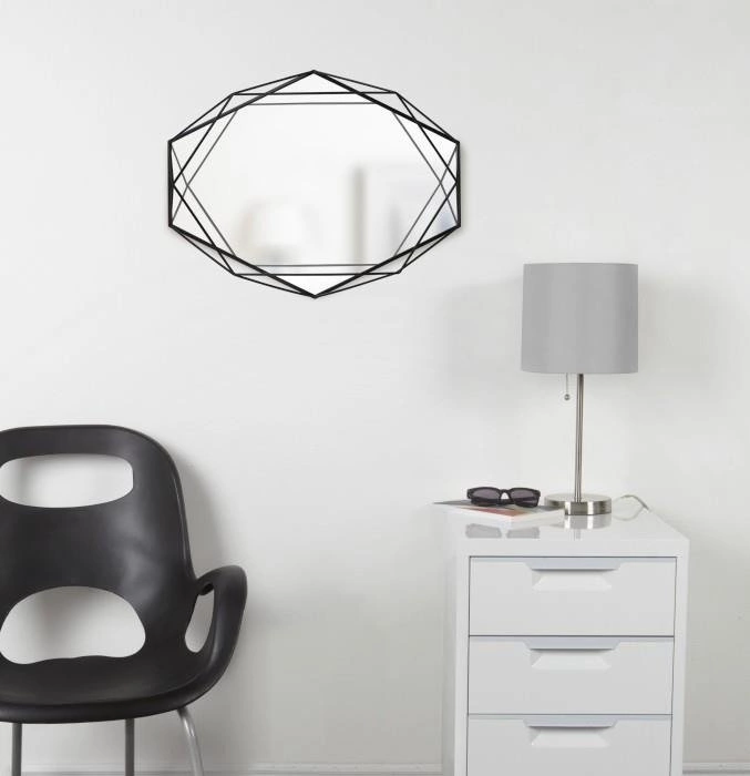 Zrcadlo Prisma Umbra upoutá neotřelým hexagonálním tvarem, který přitahuje pozornost a podtrhuje individuální styl vašeho bydlení. Trendy černý kovový rám vnese do místnosti moderní nádech a dokonale ladí s minimalistickým, skandinávským i industriálním interiérem. Šestihranný tvar zrcadla z něj dělá nejen praktický doplněk, ale i jedinečnou ozdobu na stěnu, která zvýrazní vaši předsíň, koupelnu nebo obývací pokoj.