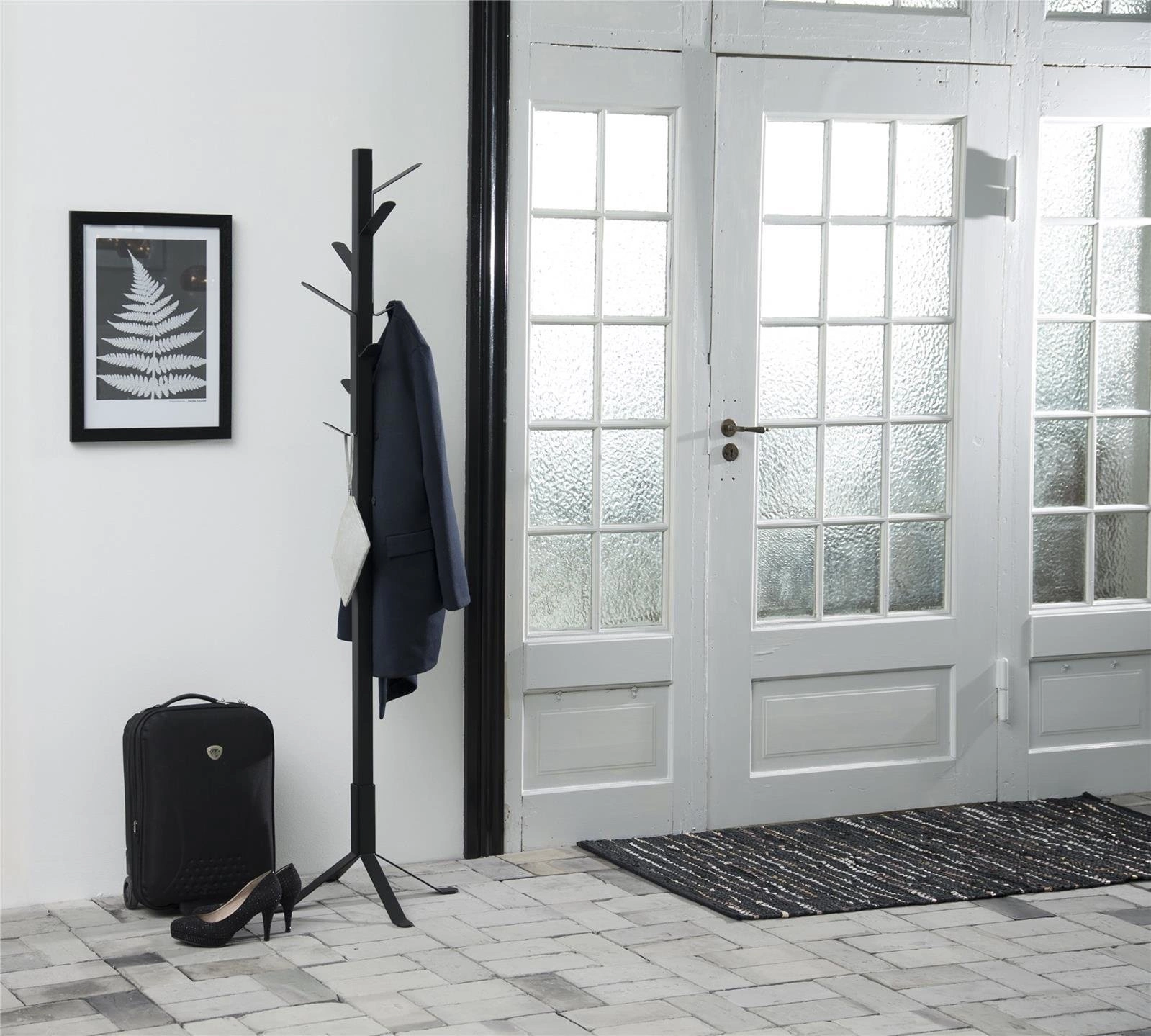 Věšák Vinson najde využití nejen v domácí předsíni, ale také v kanceláři, hotelové recepci nebo šatně. Díky vysoké maximální nosnosti 7,5 kg a optimálním rozměrům můžete snadno zorganizovat sezónní oblečení, tašky a doplňky, aniž byste zahltili prostor. Černý kovový povrch je snadno udržovatelný a odolný vůči každodennímu používání, což zaručuje dlouhodobě stylový vzhled.