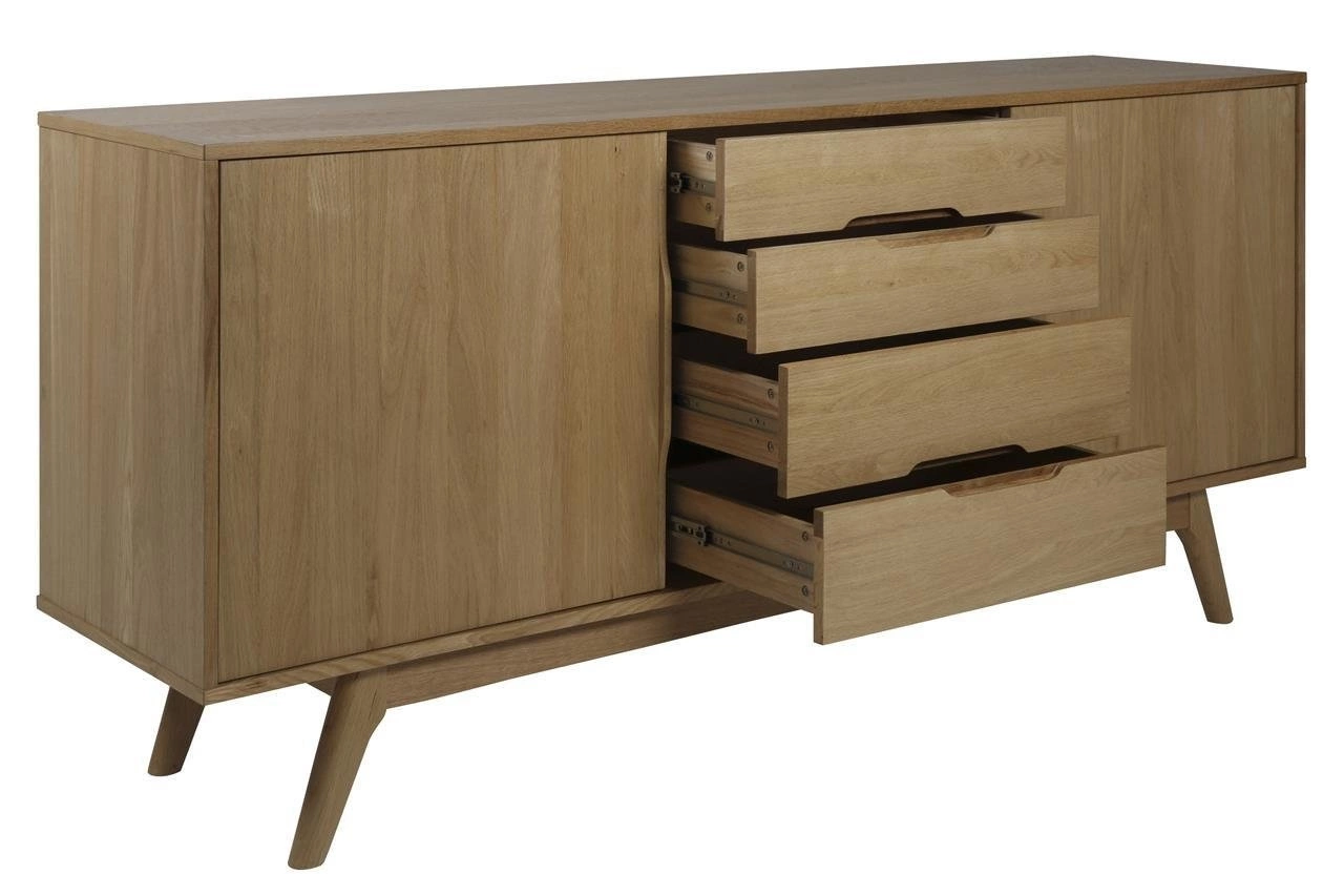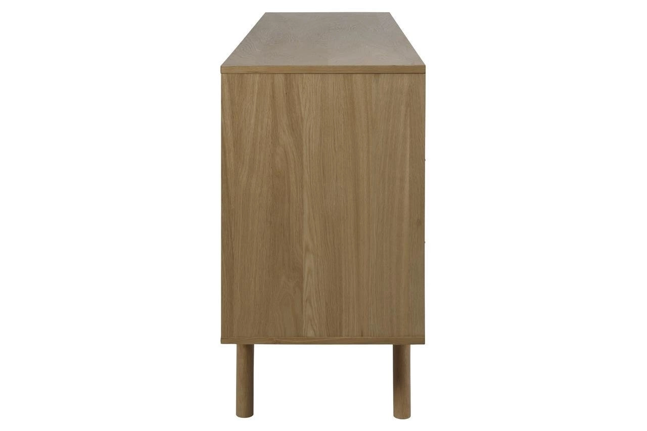 Dřevěná komoda se zásuvkami Marte Actona 180 cm je spojením přírodní krásy dubu a funkčnosti, která najde své místo jak v obývacím pokoji, tak i v ložnici. Nábytek je vyroben z dubové dýhy, olejovaný a kartáčovaný, zaujme šířkou 180 cm a čtyřmi prostornými zásuvkami, které usnadňují udržení pořádku při každodenním používání. Jednoduchý, nadčasový design na šesti stabilních nožkách působí lehce a elegantně, zatímco dvě praktické police dále rozšiřují možnosti úložného prostoru.