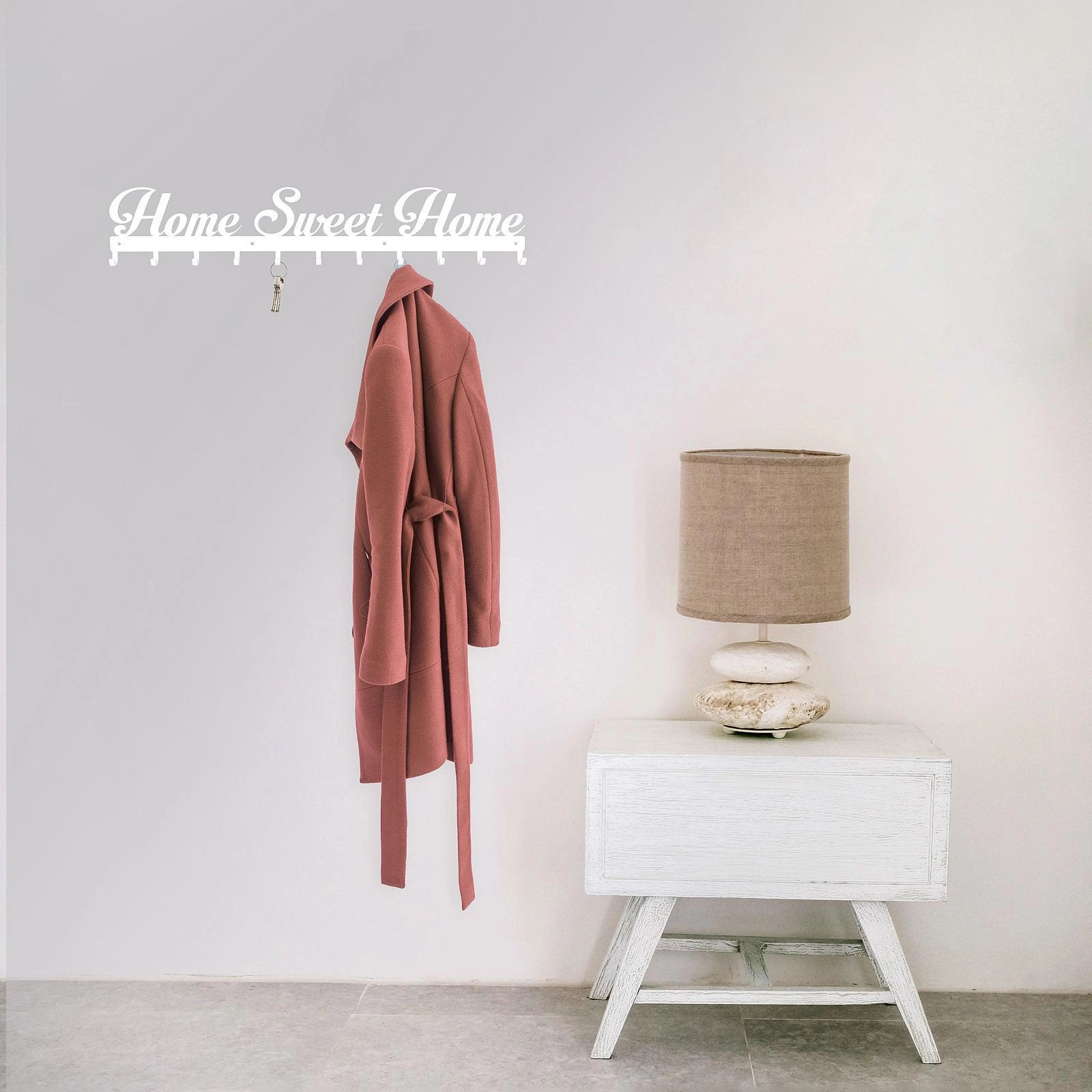 Bílá barva věšáku Sweet Home je univerzální volbou do interiérů inspirovaných moderním, skandinávským nebo minimalistickým stylem. Kovová konstrukce zajišťuje odolnost a dlouhou životnost, zatímco pečlivě tvarované háčky zabraňují sklouznutí oděvů. Nápis „Sweet Home“ je decentní dekorací, která zútulní prostor a dodá mu osobitý charakter.