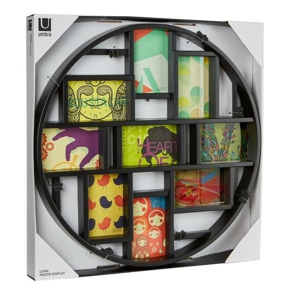 Černý závěsný multirám Umbra Luna na 9 fotografií 10x15 kulatý dekorativní na zeď