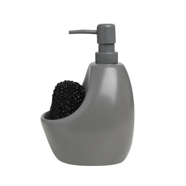 - Řešení 2v1 – dávkovač na mycí prostředek a nádoba na houbičku v jednom, což šetří místo a zajišťuje pořádek