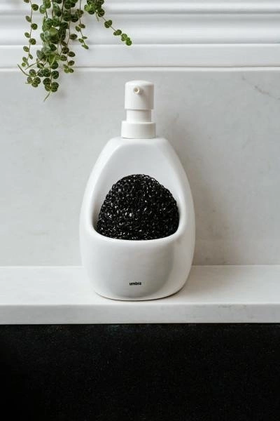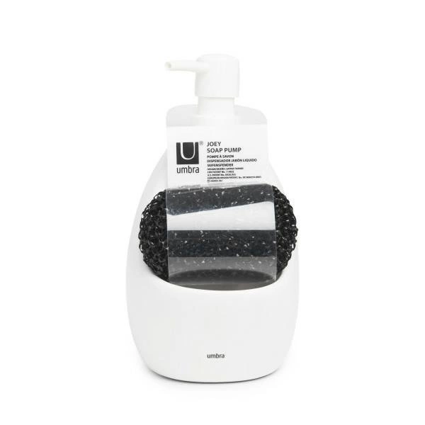 Joey od značky Umbra je promyšlený dávkovač na mycí prostředek a houbičku, který umožní mít každodenní kuchyňské pomůcky na jednom místě. Díky speciálnímu prostoru na houbičku se vyhnete mokrým skvrnám na pracovní desce a nepořádku okolo dřezu. Velký objem 591 ml znamená, že nemusíte často dolévat mycí prostředek, což vám ušetří čas i práci při mytí nádobí.