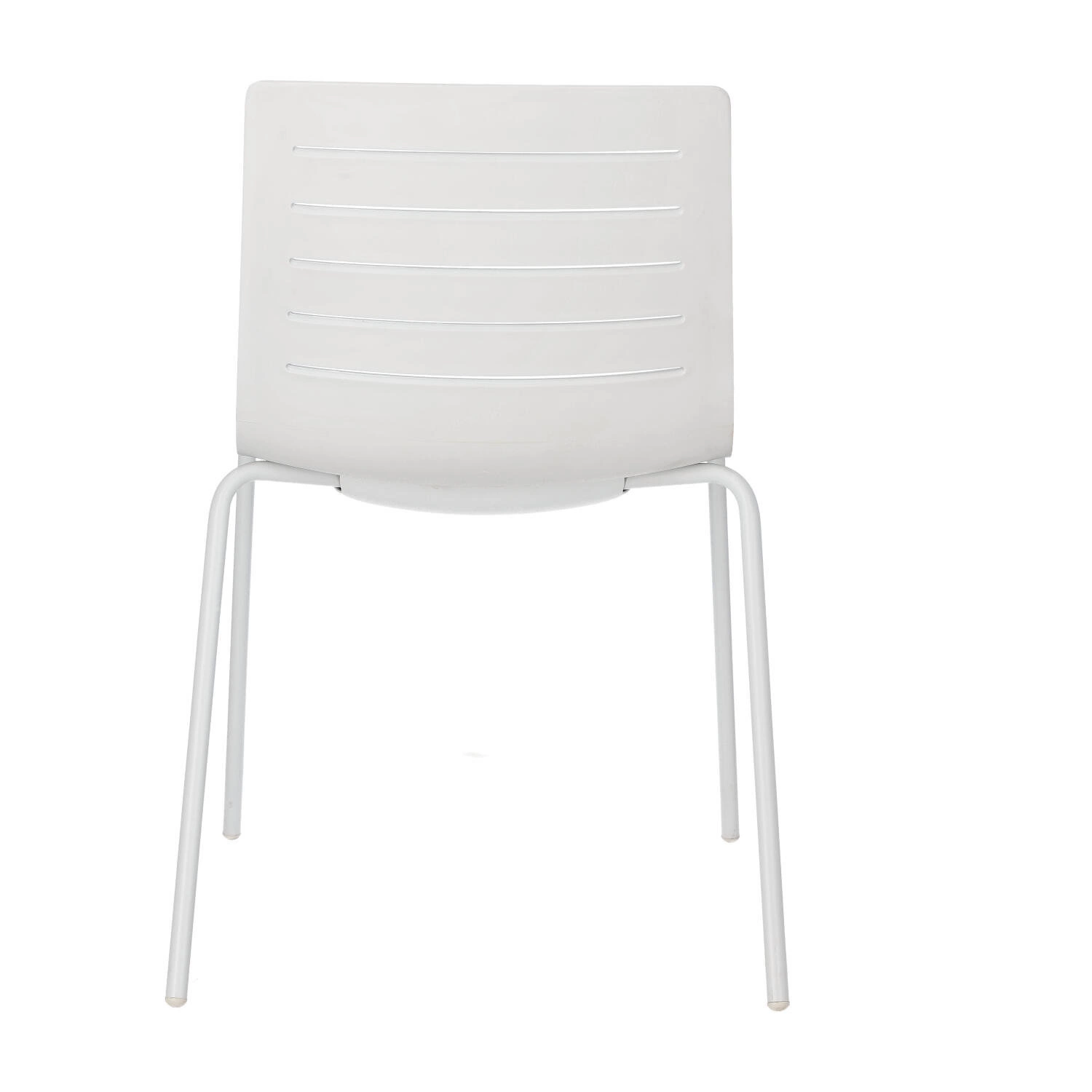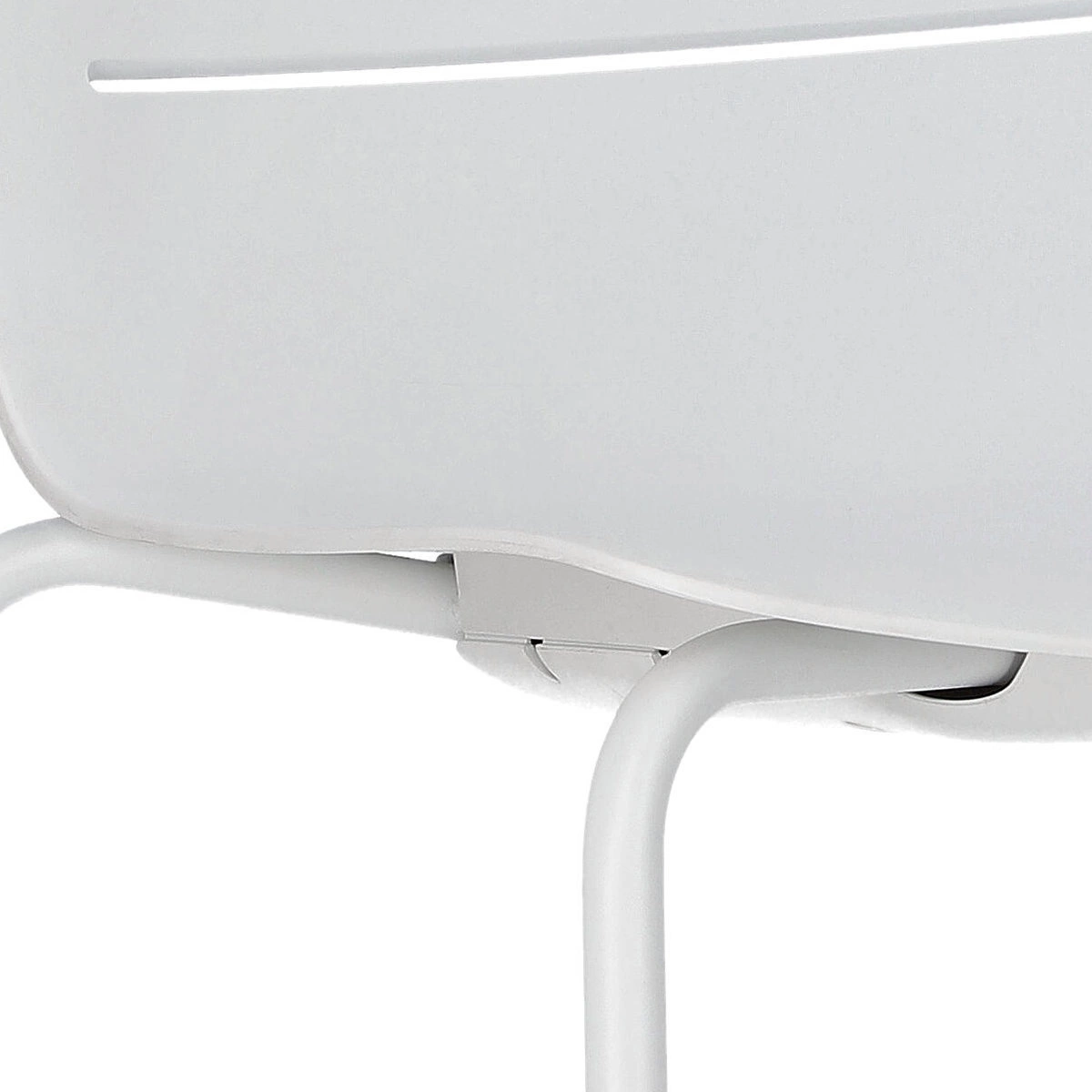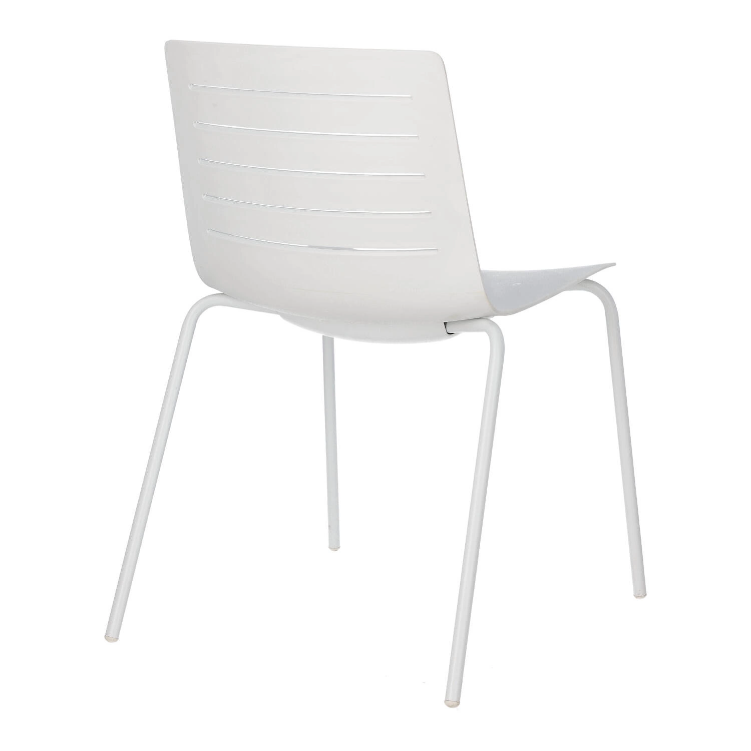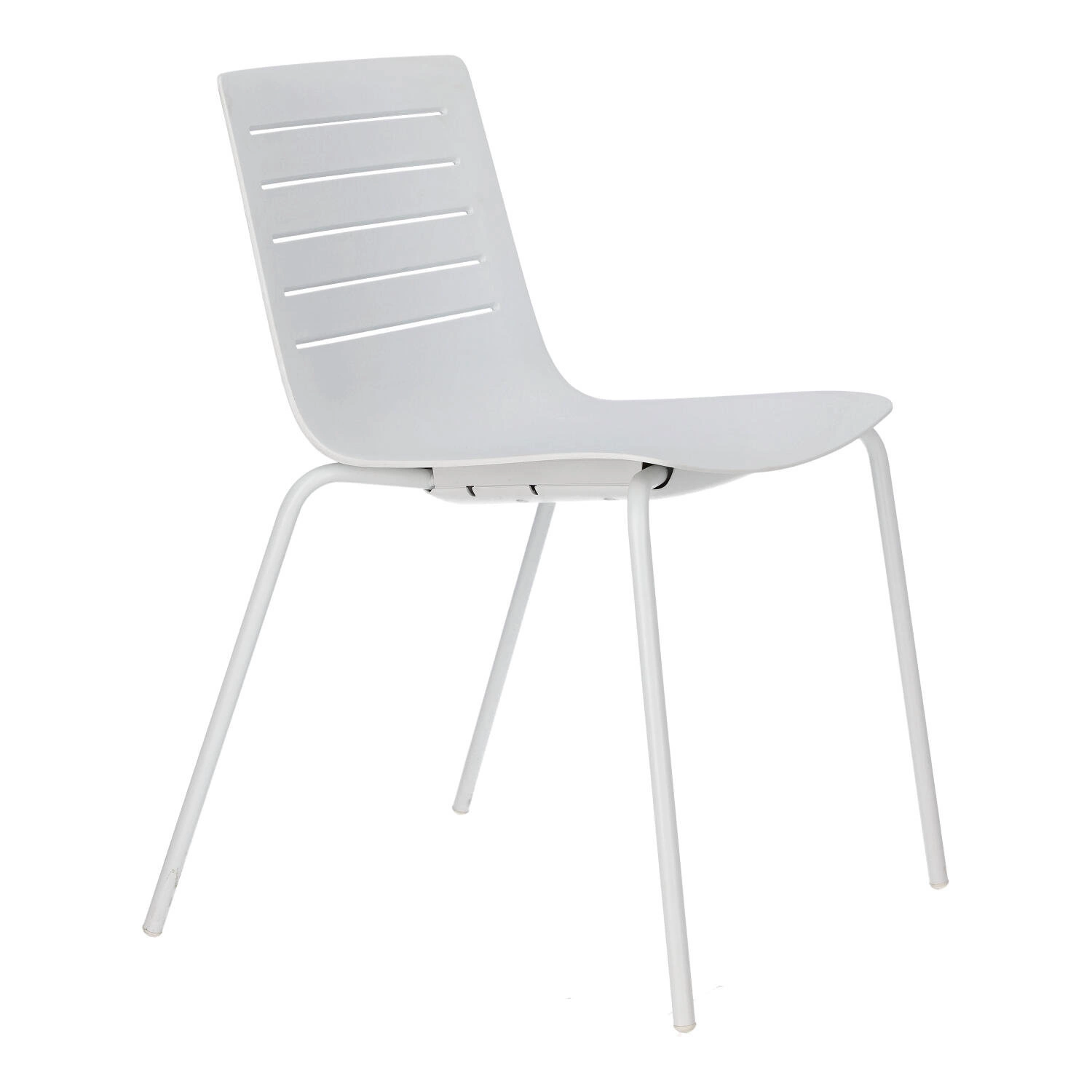 Židle o hmotnosti pouze 5 kg má kovovou základnu v bílé barvě. Je ergonomická a velmi pohodlná.