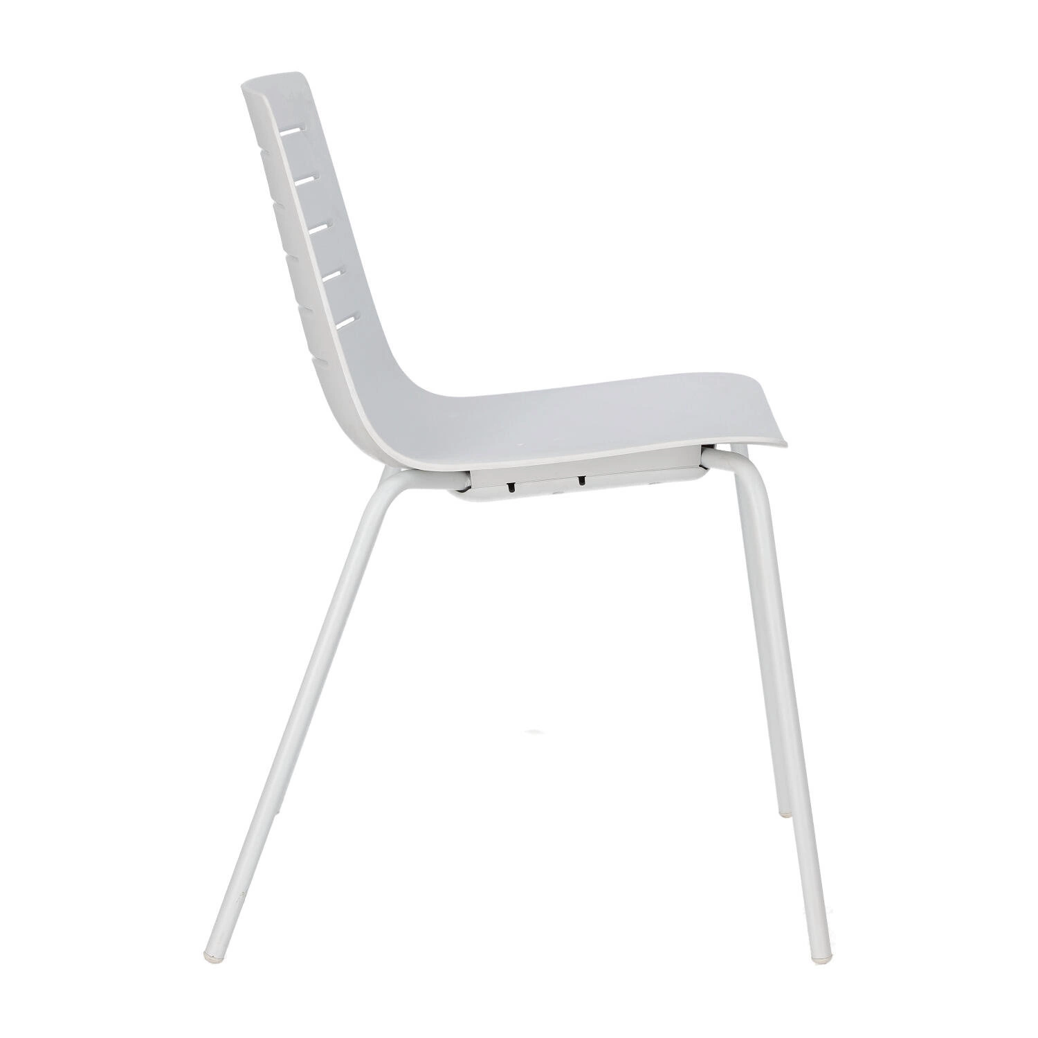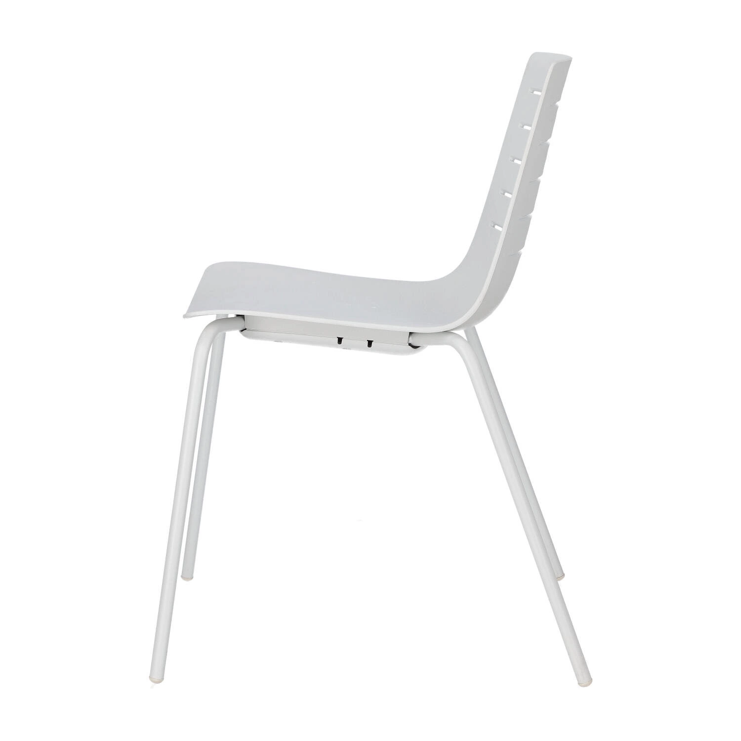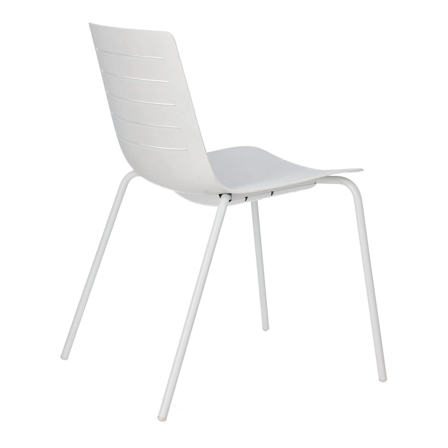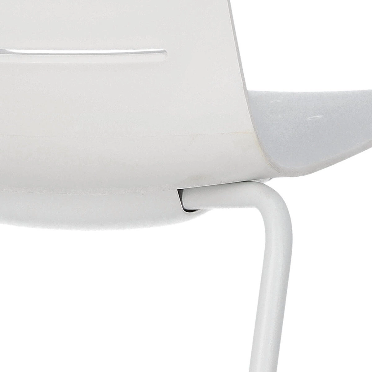 Židle o hmotnosti pouze 5 kg má kovovou základnu v bílé barvě. Je ergonomická a velmi pohodlná.