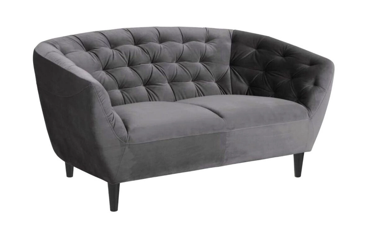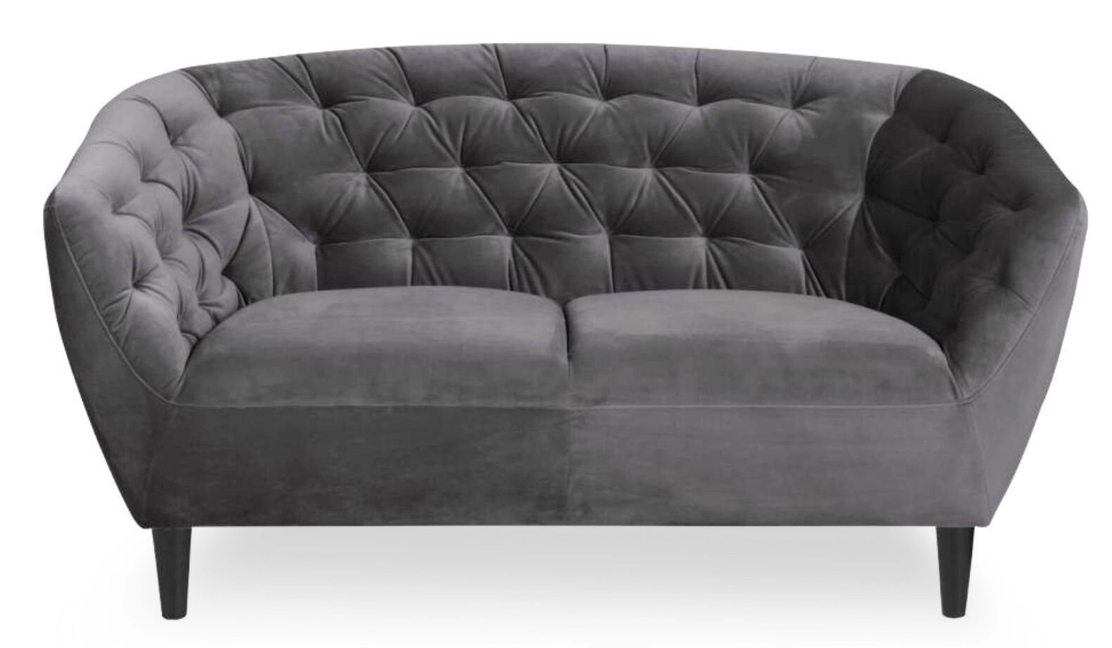 Šedá dvoumístná pohovka Ria VIC se perfektně hodí do interiérů inspirovaných glamour stylem. Měkké sametové čalounění v tmavě šedém odstínu krásně odráží světlo a jemně prosvětluje prostor. Opěradlo i sedák jsou tvarovány pro maximální pohodlí během každodenního odpočinku – ať už při odpolední kávě, nebo večerním relaxu s knihou.