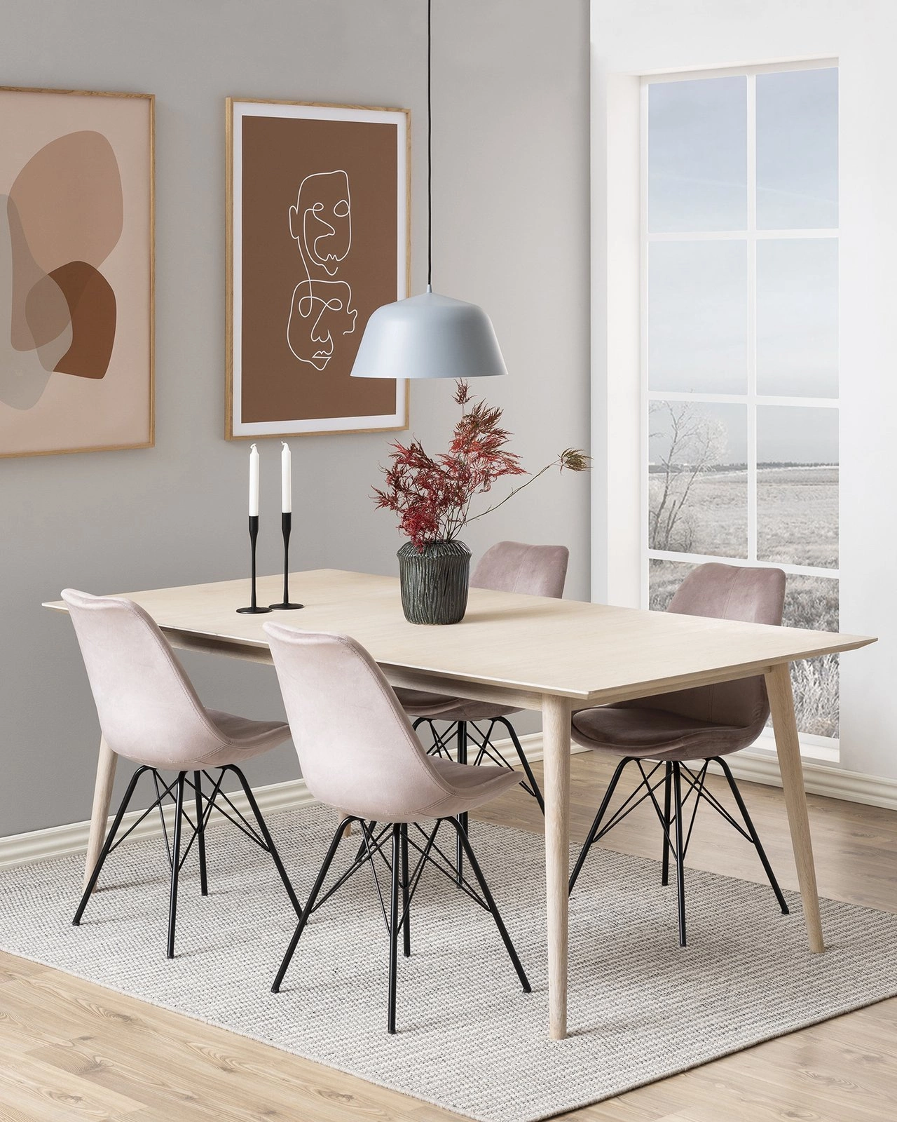 Eris VIC je ideální volbou pro ty, kteří sní o jídelně nebo obýváku s osobitým charakterem a nádechem luxusu. Čalounění v trendy pudrově růžové barvě krásně odráží světlo a dodává místnosti svěžest a jemnou eleganci. Moderní design zde dokonale ladí s klasickými detaily – lehce zaoblené hrany sedáku a černé, štíhlé nohy vytvářejí harmonický celek, který rozzáří každý interiér stylovým leskem.