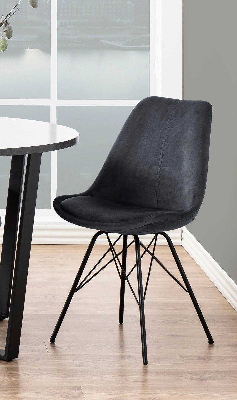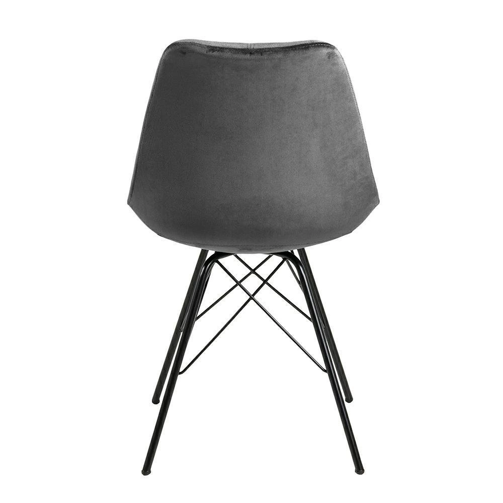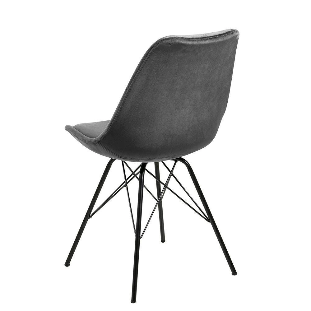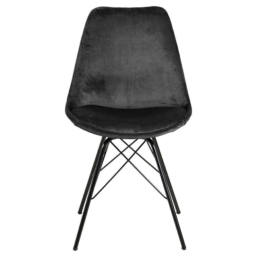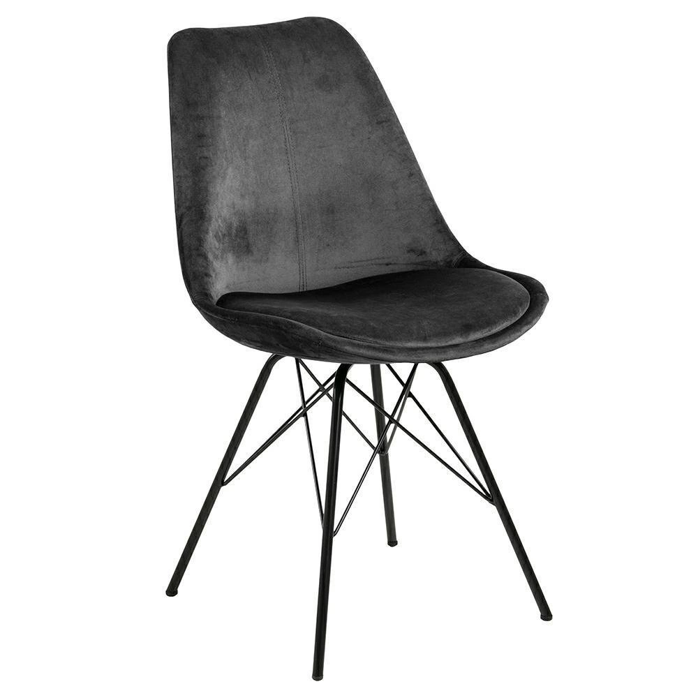 Čalouněná židle Eris VIC zaujme moderním designem s nádechem glamour – sametová látka v hlubokém šedém odstínu ladí s černou matnou podnoží a vytváří harmonický celek. Jednoduchý tvar a elegantní provedení umožňují začlenění tohoto modelu do minimalistických aranžmá, ale zároveň poslouží jako stylový dekorativní prvek v klasičtěji laděných interiérech.