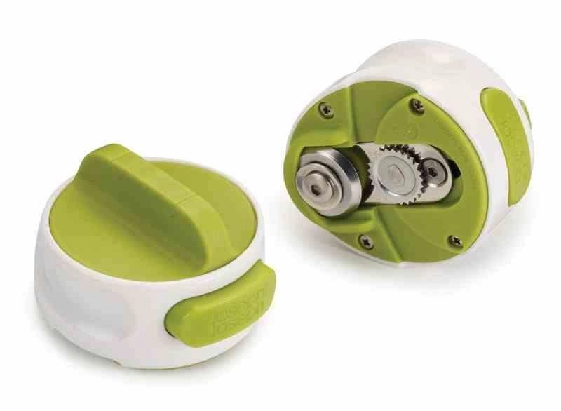 Otvírák na konzervy Can-DoKompaktní otvírák z bílého a zeleného plastu. Lze s ním snadno a rychle otevřít jakoukoli plechovku. Má velký knoflík - stačí jím otočit, aby spodní nůž otevřel plechovku. Stisknutím předního tlačítka se víko uvolní. Bezpečný - víka otevřených konzerv nemají roztřepené okraje. Snadno se ukládá do zásuvek.