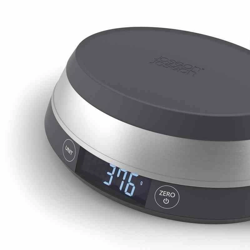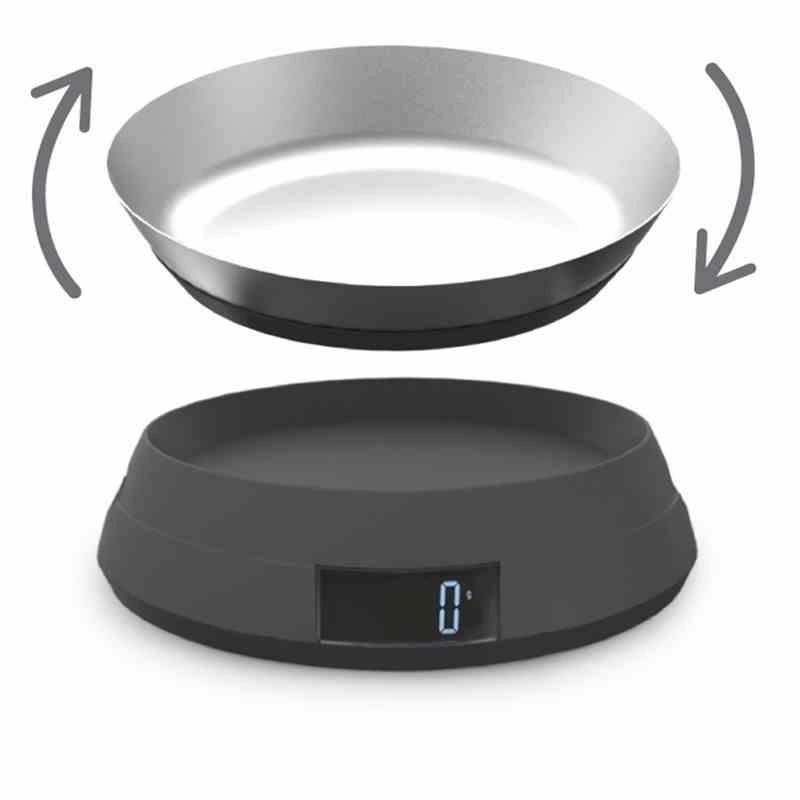 Váha se skládá ze dvou částí. Základny s LCD displejem a misky, která poskytuje kryt váhy a zároveň plochu pro vážení výrobků v sáčcích nebo jiných obalech. Při převrácení lze sypké produkty vysypat do misky.